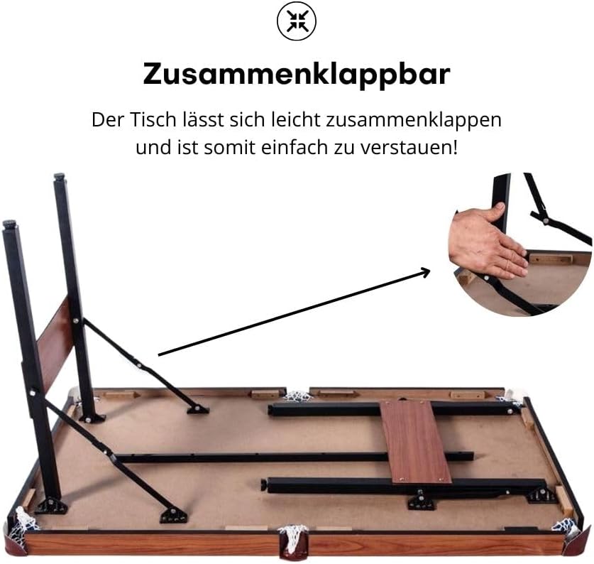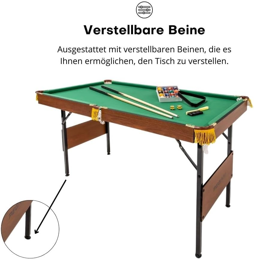 | enthaltene Komponenten | Pegasi Billardtisch 5ft Foldy - Billardtisch 5ft - Tischbillard - Zusammenklappbar - Pool Table für Erwachsene - Indoor - Premium Qualität - Holz - Grün |