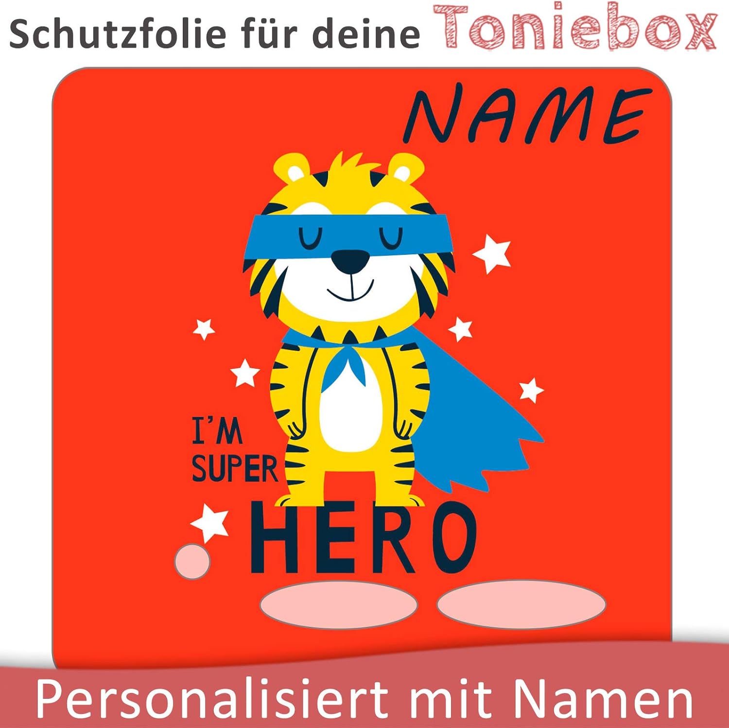 La pellicola protettiva Toniebox è personalizzabile con nome, pellicola abbinata per il caricabatterie. La pellicola è a prova di sbavature e graffi, facile da pulire, facile da applicare e correggibile. Pellicola adesiva in vinile di alta qualità! Stampato e tracciato in Germania nell'Algovia. Tutto fatto a mano con grande attenzione ai dettagli.