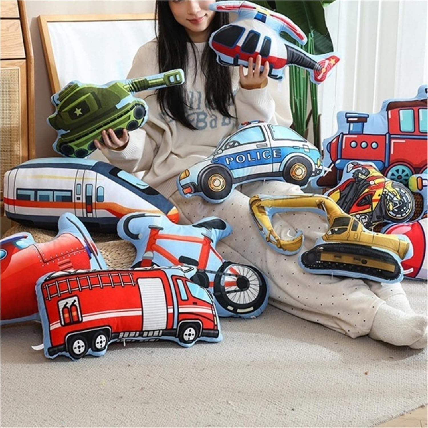 [Aspetto]: Guarda questo cuscino a forma di camion dei pompieri, con un corpo rosso acceso e strisce bianche. I motivi a scala e estintore sul corpo sono realistici e il tetto blu è come un cielo limpido, carino e accattivante. [Materiale]: materiale di peluche morbido e delicato selezionato, setoso e delicato sulla pelle, proprio come essere abbracciati dolcemente dalle nuvole; l'interno è riempito con cotone PP completo, soffice ed elastico, for un'esperienza estremamente confortevole. [Dimensioni]: Ha una dimensione perfetta di 40 cm/15,7 pollici, né troppo grande né troppo piccolo. Che venga posizionato sul divano come cuscino o tenuto tra le braccia for dormire, è molto adatto e aggiunge calore alla tua vita. [Lavorazione]: Ogni punto è fine e uniforme, il tessuto di peluche è cucito con cura, il motivo è stampato in modo chiaro e deciso, non c'è filo in più, la lavorazione è squisita, la qualità è garantita e dimostra ingegnosità. [Scopo]: Non è solo un grazioso cuscino, ma può anche fornire un morbido supporto quando si è stanchi e alleviare lo stress fisico e mentale; può anche essere utilizzato come decorazione for la casa for aggiungere un tocco di colore brillante e un'atmosfera infantile alla stanza.