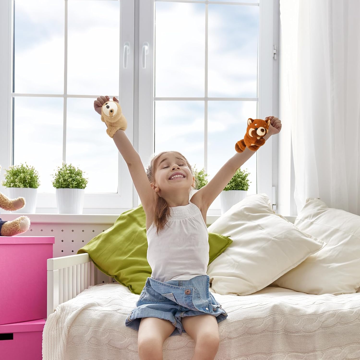 Giocattoli di peluche premium: il panda rosso e il koala sono realizzati in materiale morbido di alta qualità, piacevole al tatto e sicuro per i bambini dai 3 anni in su; la lavorazione dettagliata e i dettagli curati rendono questi animali di peluche un compagno speciale Braccialetti creativi a scatto: ognuno dei due peluche è dotato di un comodo braccialetto a scatto che si attacca facilmente al polso, al braccio o alla caviglia; ideale per indossare, giocare o decorare Divertimento educativo: questi animali di peluche promuovono l'immaginazione e l'interesse per gli animali; perfetti per giochi di ruolo, per imparare o semplicemente per coccole Molteplici possibilità di utilizzo: sia come accessorio nella vita di tutti i giorni, come giocattolo da viaggio o come decorazione per la cameretta dei bambini e le feste, le possibilità sono infinite Regalo ideale: confezionati in una confezione accattivante, questi peluche sono perfetti come regalo per compleanni, Natale o altre occasioni speciali