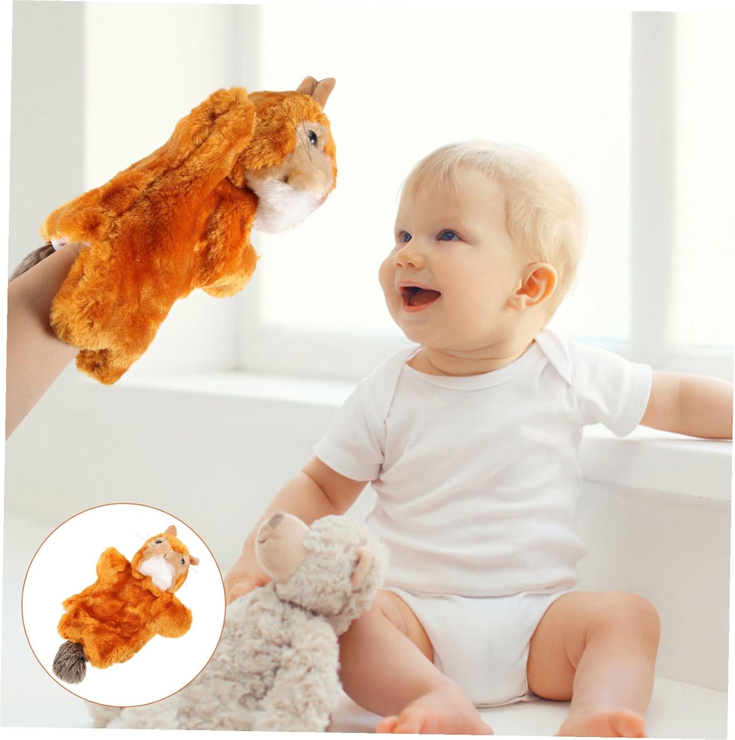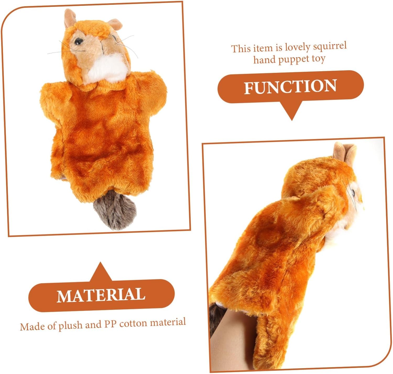 Burattini a mano: perfetti per attività di immaginazione e interattive, migliorano le capacità di comunicazione e le relazioni genitore-figlio, simpatico burattino imbottito Burattino a mano con animali: piacevole al tatto, fantastico, divertente per la narrazione interattiva, giocattolo scoiattolo Per la narrazione: il design dello scoiattolo animale è vivido e attraente, può promuovere lo sviluppo visivo e fornire una buona esperienza visiva, burattino da dito scoiattolo Burattini a mano con animali, burattini a mano per bambini: aiuta a sviluppare la destrezza, la creatività, il vocabolario e l'immaginazione del bambino e migliora anche la comunicazione emotiva tra il bambino e i genitori, burattini per animali con burattini a mano per bambini con giochi di ruolo: i burattini per bambini possono interagire con amici o adulti quando sono a casa, in classe o a una festa. per la prima educazione
