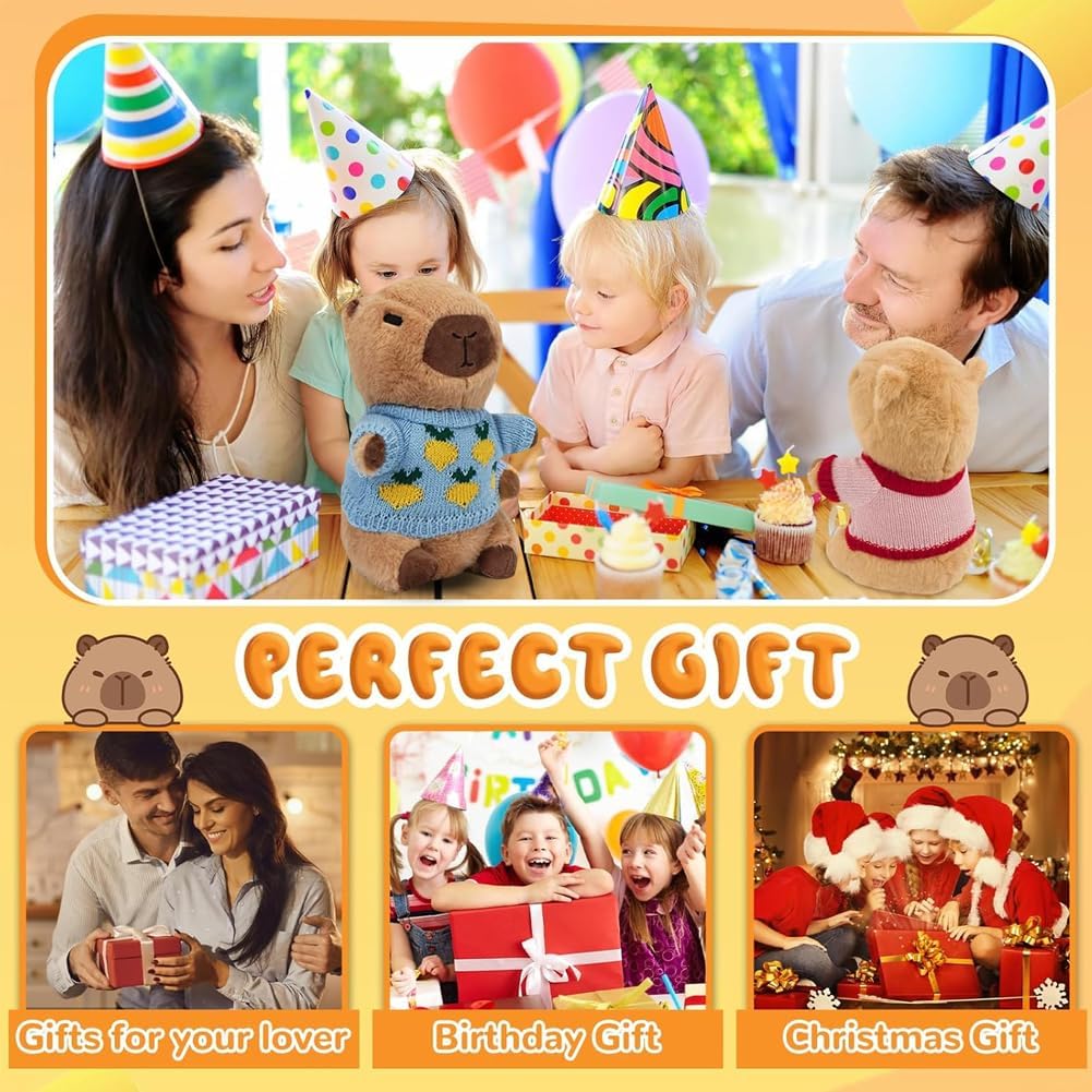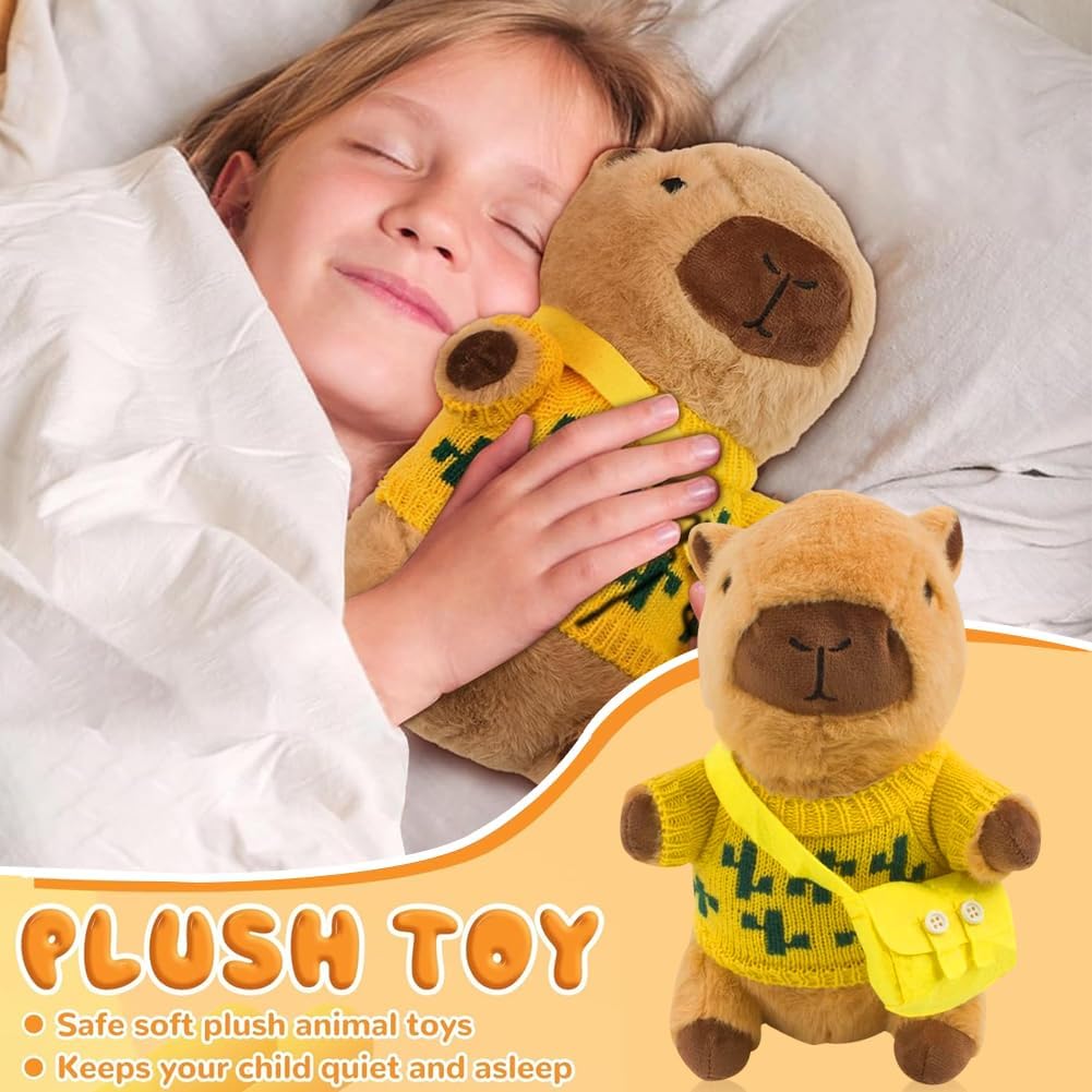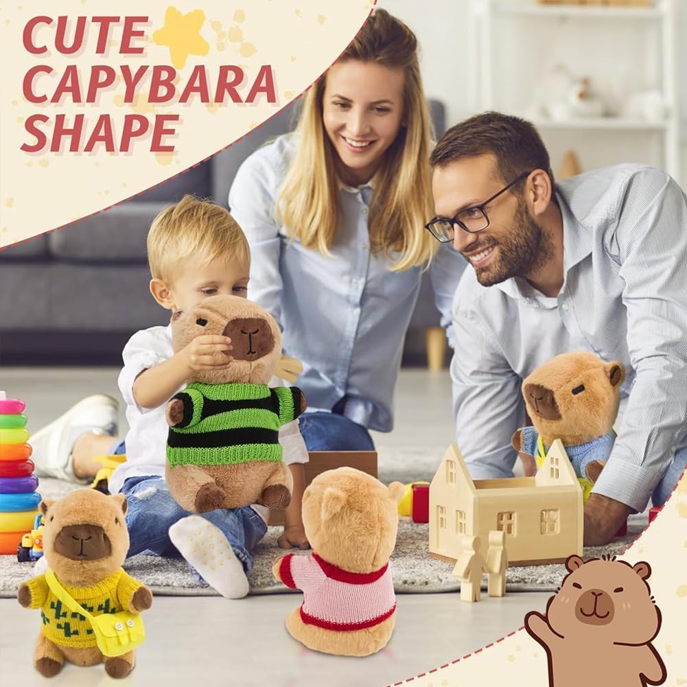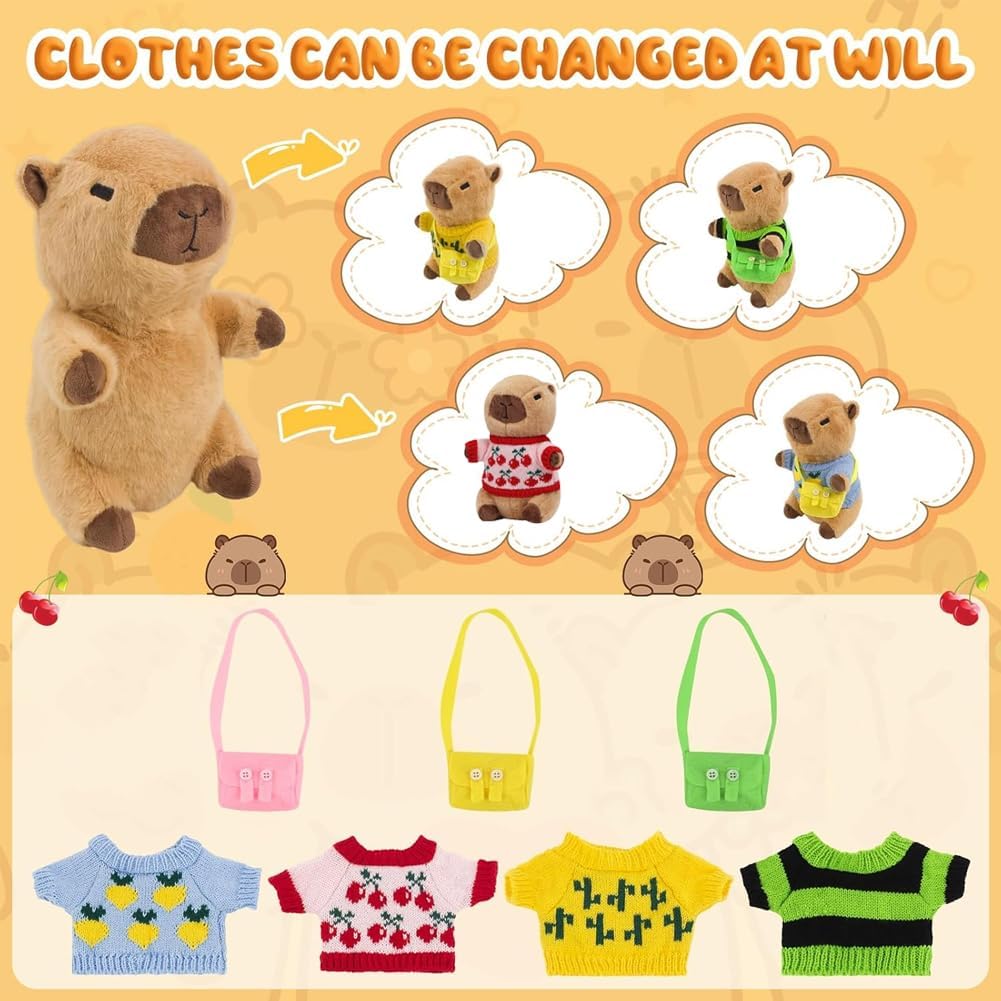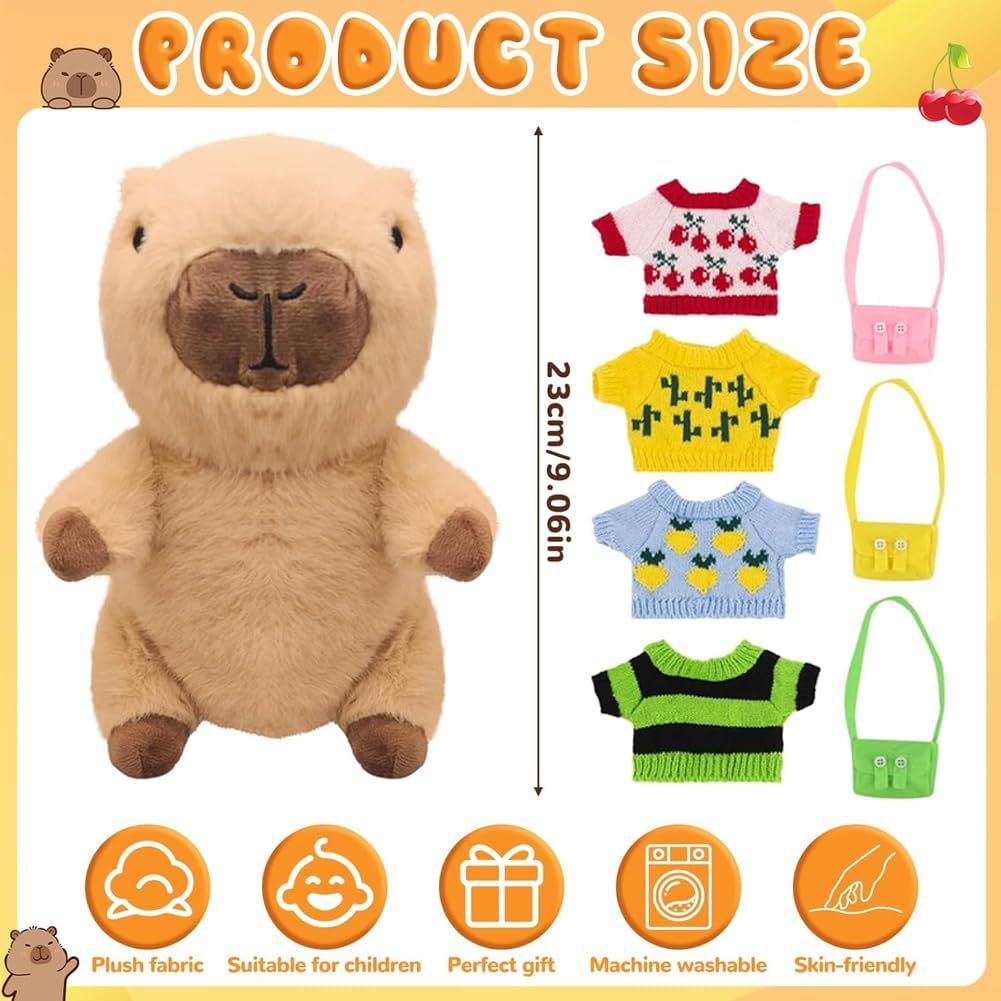 L'imballaggio include:Riceverai 8 accessori, 1 peluche Capibara, 4 tasche, 3 Mini zaino. I peluche Capibara sono più piccoli, dimensioni: 25 cm, molto portatili. Questo peluche Capibara ha una forma tridimensionale unica e un'espressione carina che sembra divertente e accattivante, è un ottimo modo per attirare i bambini. Buon compagno: Il simpatico peluche Capibara può abbracciare e accompagnare te e i tuoi amici, familiari e bambini, aiutando a rilassare il tuo umore. Con il suo morbido peluche Capibara e la sua forma carina, questo giocattolo conferisce a qualsiasi letto, divano o tavolo un'espressione unica e crea un'atmosfera allegra. MULTIFUNZIONALE:Il peluche Capibara piace a tutte le età, dai bambini piccoli agli adulti, ed è perfetto per camere da letto, soggiorni e uffici. Il morbido peluche Capybara non solo dà vita all'arredamento quotidiano della casa, ma funge anche da piccolo compagno in movimento MULTIFUNZIONALE:Il peluche Capibara piace a tutte le età, dai bambini piccoli agli adulti, ed è perfetto per camere da letto, soggiorni e uffici. Il morbido peluche Capybara non solo dà vita all'arredamento quotidiano della casa, ma funge anche da piccolo compagno in movimento UN REGALO ADORABILE PER TUTTI: Il suo aspetto squisitamente progettato è la scelta perfetta per compleanni, Natale e Ringraziamento. Con le sue caratteristiche squisitamente progettate, è un must per un comfort extra e una gioia per la famiglia, gli amici e i bambini.
