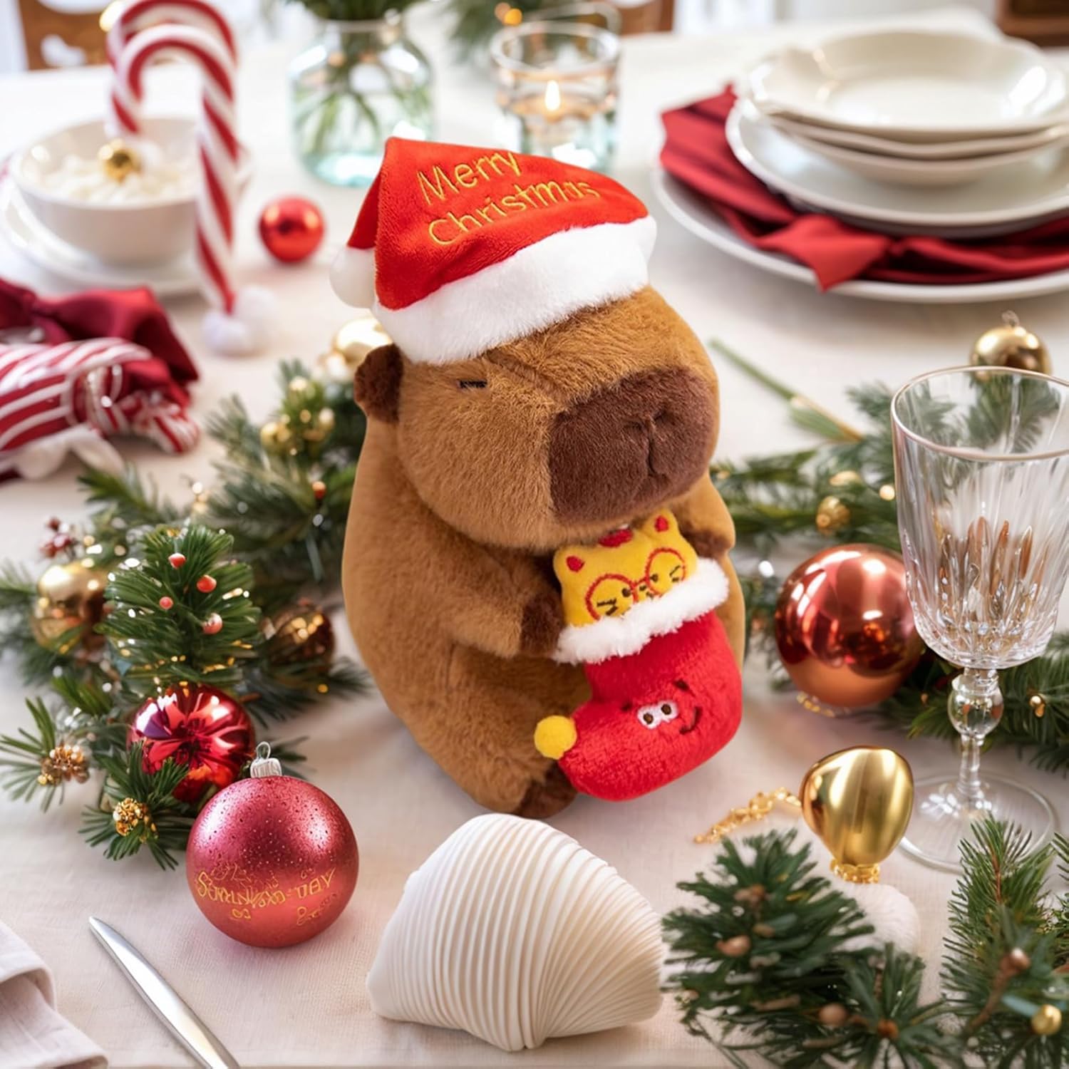 Design festoso di Capybara: con il suo accattivante design del cappello natalizio di Capybara, il peluche Capybara è adatto come esaltatore di umore stagionale per la casa e come decorazione funzionale per l'albero di peluche. Questo elemento decorativo dall'atmosfera festosa aggiungerà fascino a mensole, alberi o tavoli e farà sì che ogni angolo rifletta il fascino delle festività natalizie. Design carino: il peluche Capybara presenta una presenza visiva giocosa e un simpatico aspetto peluche, aggiungendo fascino alla stanza con il suo aspetto paffuto e adorabile; Questo design commovente e carino porterà gioia in qualsiasi spazio abitativo, rendendolo ideale per camere da letto o accoglienti aree gioco. Morbido e confortevole: grazie alla sua imbottitura elastica, questo peluche natalizio manterrà la sua forma nel tempo fornendo allo stesso tempo un comodo sostegno per gli abbracci. È un fidato amico da coccolare per tutte le età, che si gode momenti ancora più teneri prima di andare a dormire o durante le celebrazioni festive. Peluche Comfort Emozionale: Progettato come supporto per il comfort notturno, il capibara imbottito offre un senso di sicurezza con la sua consistenza morbida e la sua presenza calmante, garantendo ai bambini un'esperienza di calma pacifica e relax emotivo mentre passano a dormire o affrontano le preoccupazioni notturne. adatto per presentare occasioni o aggiungere calore a qualsiasi ambiente della stanza