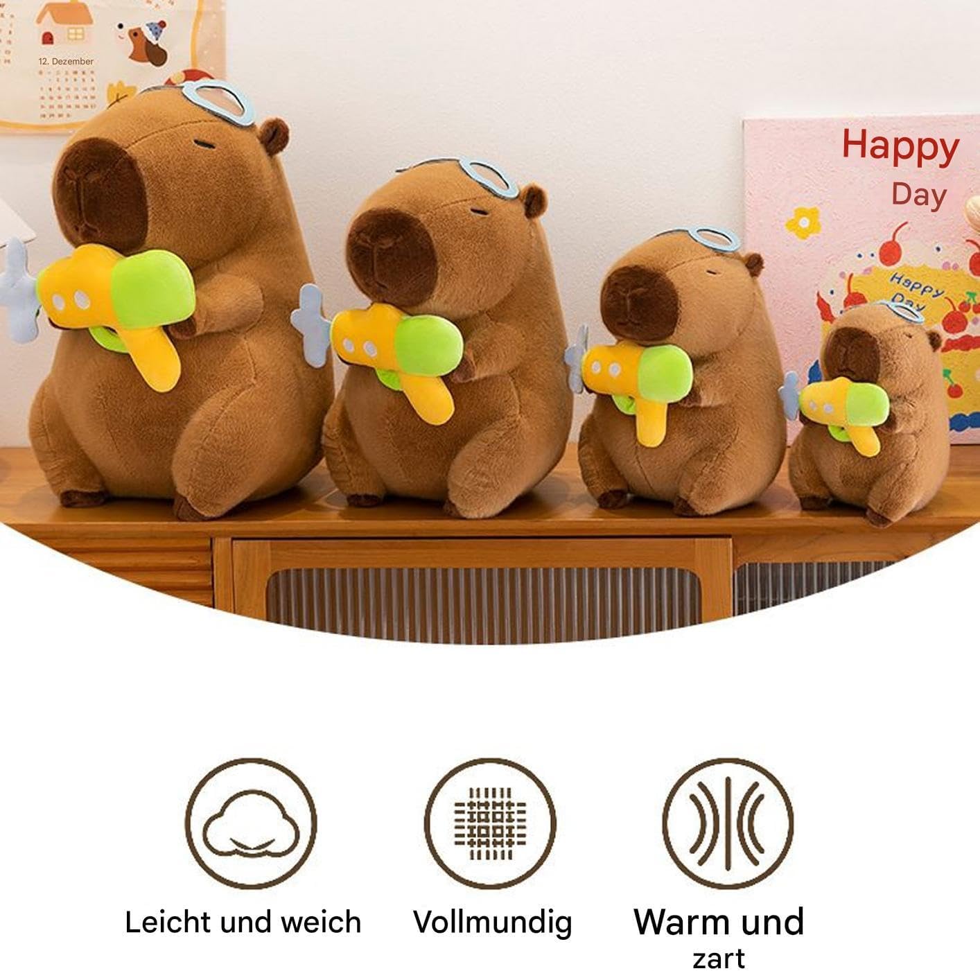 Perfetto per i viaggi: grazie alla sua forma adatta allo zaino, il peluche Capybara può essere facilmente riposto e diventerà il tuo compagno di viaggio indispensabile in tutte le escursioni e tour. Emozioni estive: il peluche Capybara con confezione estiva porta gioia ovunque e scalda il cuore come premuroso regalo di compleanno. Sicurezza robusta: combina bordi morbidi e sicuri con cuciture rinforzate per resistenza e protezione. La stampa precisa del bagno mostra un'elevata attenzione ai dettagli: un peluche visivamente accattivante e affidabile per il divertimento quotidiano. Incantevoli decorazioni stagionali: il simpatico capibara in costume da bagno estivo nobilita scrivanie e scaffali. Affascina gli appassionati di oggetti decorativi giocosi con una giocosa combinazione di fascino e moda estiva. Robusto e tenero compagno: sperimenta la delicata sensazione sulla pelle grazie al tessuto di alta qualità, abbinato a una forma stabile e al materiale di riempimento in PP ecologico per un piacere duraturo - il compagno morbido e ideale per la vita di tutti i giorni e la cameretta dei bambini