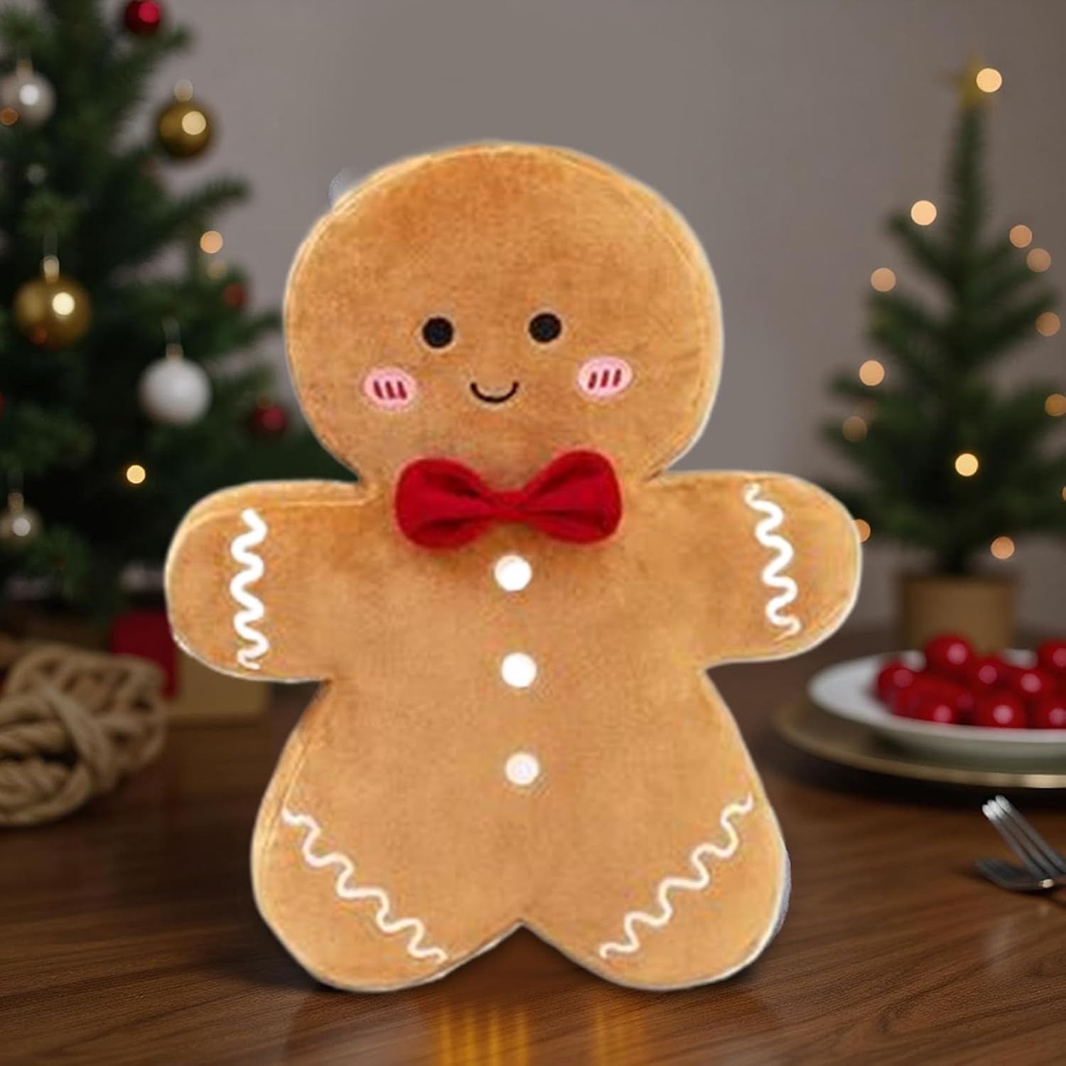 Colori tradizionali: la classica forma Gingerbread Man in caldo rosso e bianco è impreziosita da ricami 3D testurizzati. Questa lavorazione artistica arricchisce le tradizioni natalizie con un incantevole carattere artigianale. Delicato sulla pelle: progettato con imbottitura spessa e morbida in cotone PP, che offre un comfort a basso impatto irritante insieme al calore delicato sulla pelle per un relax ideale Versatilità di utilizzo e ambiente: la combinazione di fascino giocoso del motivo natalizio e pratico doppio utilizzo arricchisce ogni ambiente abitativo grazie alle varianti di decorazione flessibili, sia come accessorio accogliente che come simpatico giocattolo Regalo di Natale perfetto: questo simpatico peluche diffonde gioia festiva ed è un regalo di Natale ideale. È perfetto come ricordo duraturo per la famiglia o gli amici nel periodo natalizio Incantevole colpo d'occhio: posiziona questo peluche Gingerbread nella tua stanza per diffondere calore e gioia festosa. Si inserisce perfettamente in un ambiente natalizio e funge da simbolo senza tempo per feste natalizie e feste annuali