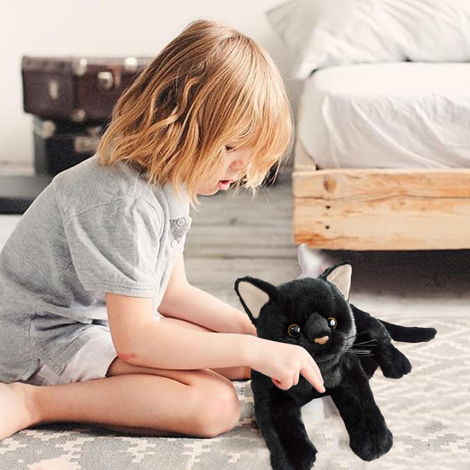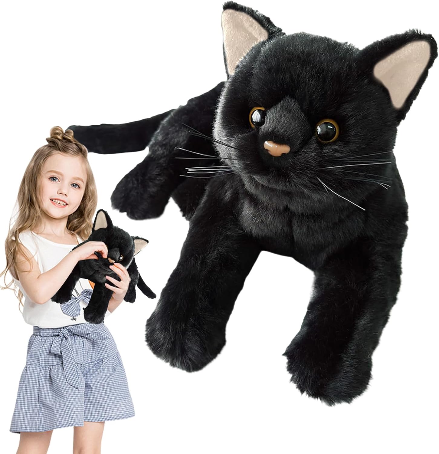 【Tessuti affidabili】 Il nostro peluche nero per gatti è progettato per offrire il massimo comfort. Collegato da un lucchetto a scheletro, il peluche è realizzato con tessuti di peluche resistenti per garantire che non si stacchi facilmente. Squisito e carino: questo giocattolo imbottito per gatti neri è progettato per stimolare la vista, l'udito e il tatto dei bambini e aiutarli a cogliere le complessità del mondo esterno con il suo aspetto carino e realistico. 【Compagno ideale】 Rilassati con questo peluche nero per gatti. Perfetto per fare un pisolino, dormire o riposare, adatto a diversi ambienti come casa, scuola, posto di lavoro o interni dell'auto. Sperimenta il comfort e il relax perfetti. 【Realizzato in modo squisito】 Con il suo materiale affidabile e i bordi accuratamente progettati, questo animale di peluche a forma di gatto nero è un peluche che offre infinite ore di gioco. La sua consistenza morbida e soffice lo rende un comodo amico da coccolare che non si usura, si strappa o si danneggia facilmente. 【Buona scelta】 Questo gatto di peluche nero è un amico perfetto per i bambini, offrendo comfort e divertimento incoraggiando la loro immaginazione e creatività. È un'opzione meravigliosa per genitori e parenti