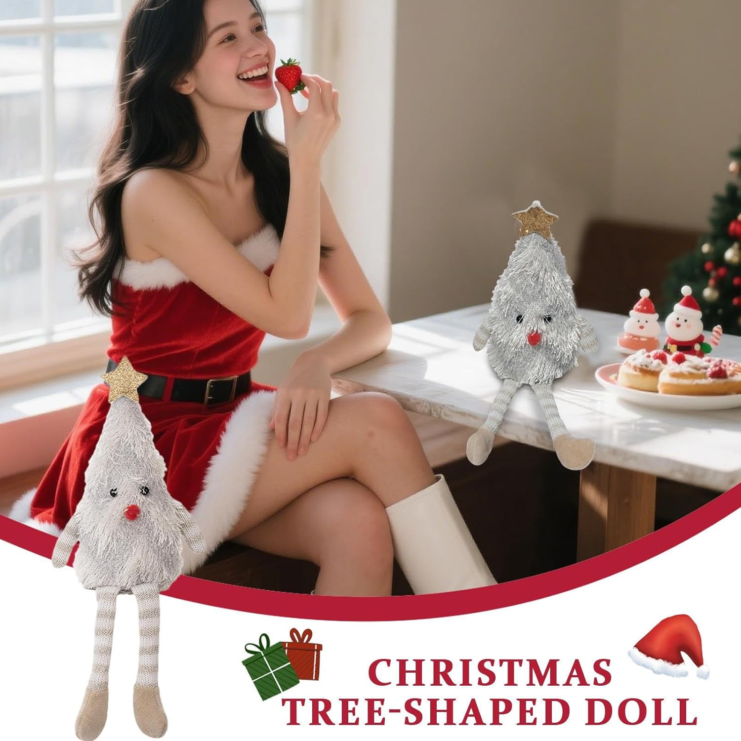 Decorazione natalizia perfetta: i graziosi peluche natalizi con estetica natalizia 3D a forma di soffice albero combinano fascino e funzionalità per arricchire il tuo ambiente stagionale. Decorazione festiva: la classica forma ad albero di Natale con affascinanti accenti di stella e pompon diffonde un'accogliente allegria natalizia e dona alla tua casa una calda atmosfera natalizia. Resistenza duratura: l'imbottitura in cotone elastico con una base solida assicura che questi peluche natalizi stiano sempre in piedi e mantengano la loro forma. Ciò significa che hanno un effetto duraturo e affascinante nelle decorazioni festive. Varietà di decorazioni: perfette come decorazione per feste, idee regalo o accessori per la casa: le figure di peluche si integrano facilmente in scaffali, tavoli e scrivanie per la gioia di Natale tutto l'anno con un design affascinante Morbido peluche abbracciabile: il tessuto in peluche a pelo corto garantisce un delicato contatto con la pelle, perfetto per giocare e per le festive decorazioni natalizie