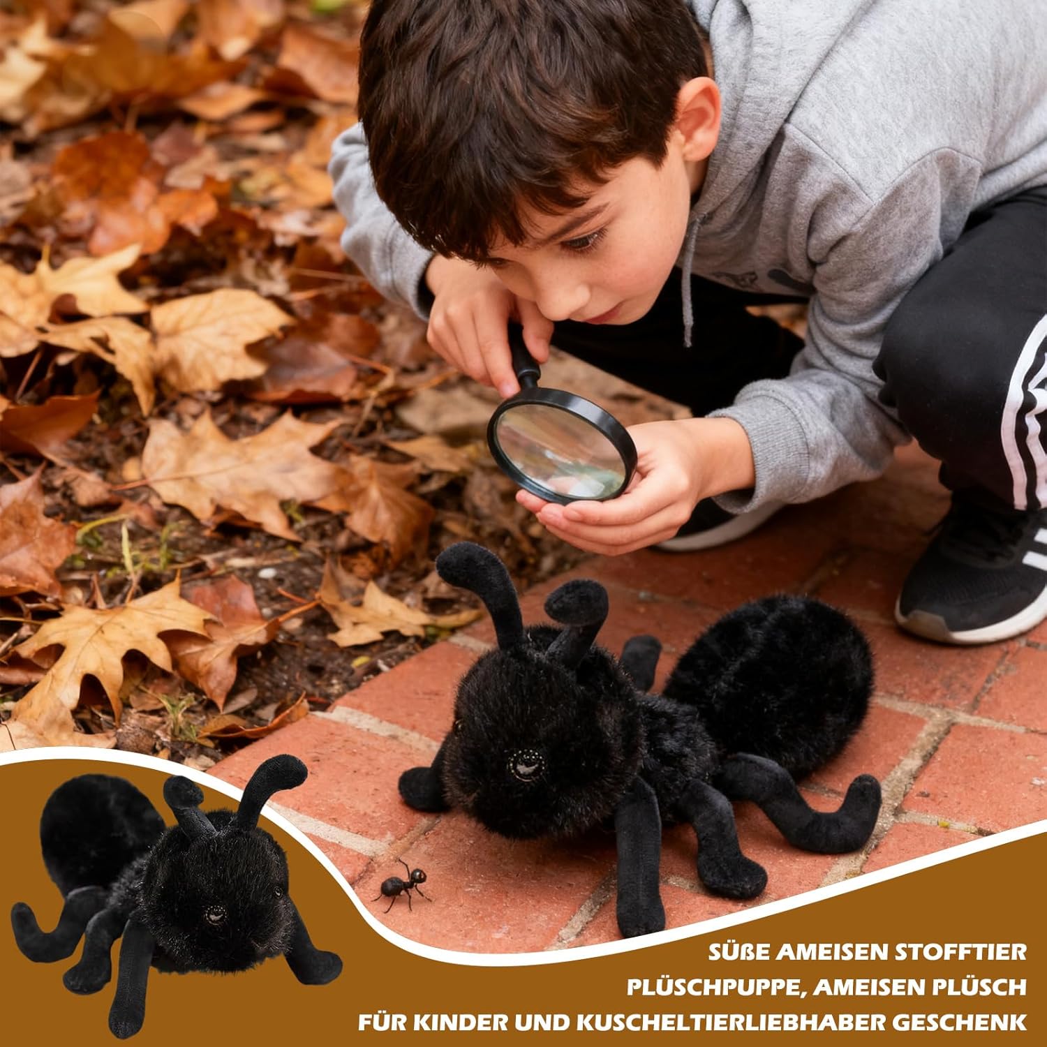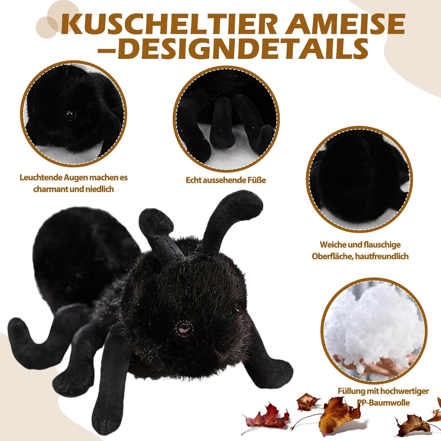 Esperienza di coccole super morbida: il peluche per formiche è realizzato in tessuto morbido di alta qualità, che garantisce il massimo comfort. È il compagno perfetto per le coccole, ideale per i bambini e gli amanti degli animali di peluche. Dimensioni ideali per i bambini: con le sue dimensioni perfette, il peluche si adatta comodamente alle mani dei bambini. È ideale come decorazione per la cameretta dei bambini ed è il compagno di gioco ideale per i più piccoli per coccolarsi e giocare. Durevole e facile da pulire: il materiale peluche per formiche non è solo incredibilmente morbido, ma anche particolarmente resistente. Può essere facilmente lavato a bassa temperatura, in modo che il peluche rimanga sempre pulito e fresco, anche con un uso frequente. Simulazione realistica delle formiche: la rappresentazione dettagliata di una vera formica rende questo peluche un emozionante oggetto educativo per i bambini. Promuove l'interesse per gli animali e la natura ed è un modo divertente per insegnare ai bambini la conoscenza della fauna selvatica. Regalo perfetto per tutte le età: che si tratti di bambini, amanti degli animali di peluche o amanti degli animali, questo peluche è il regalo perfetto per ogni occasione, che si tratti di un compleanno, una vacanza o semplicemente come gesto amorevole.
