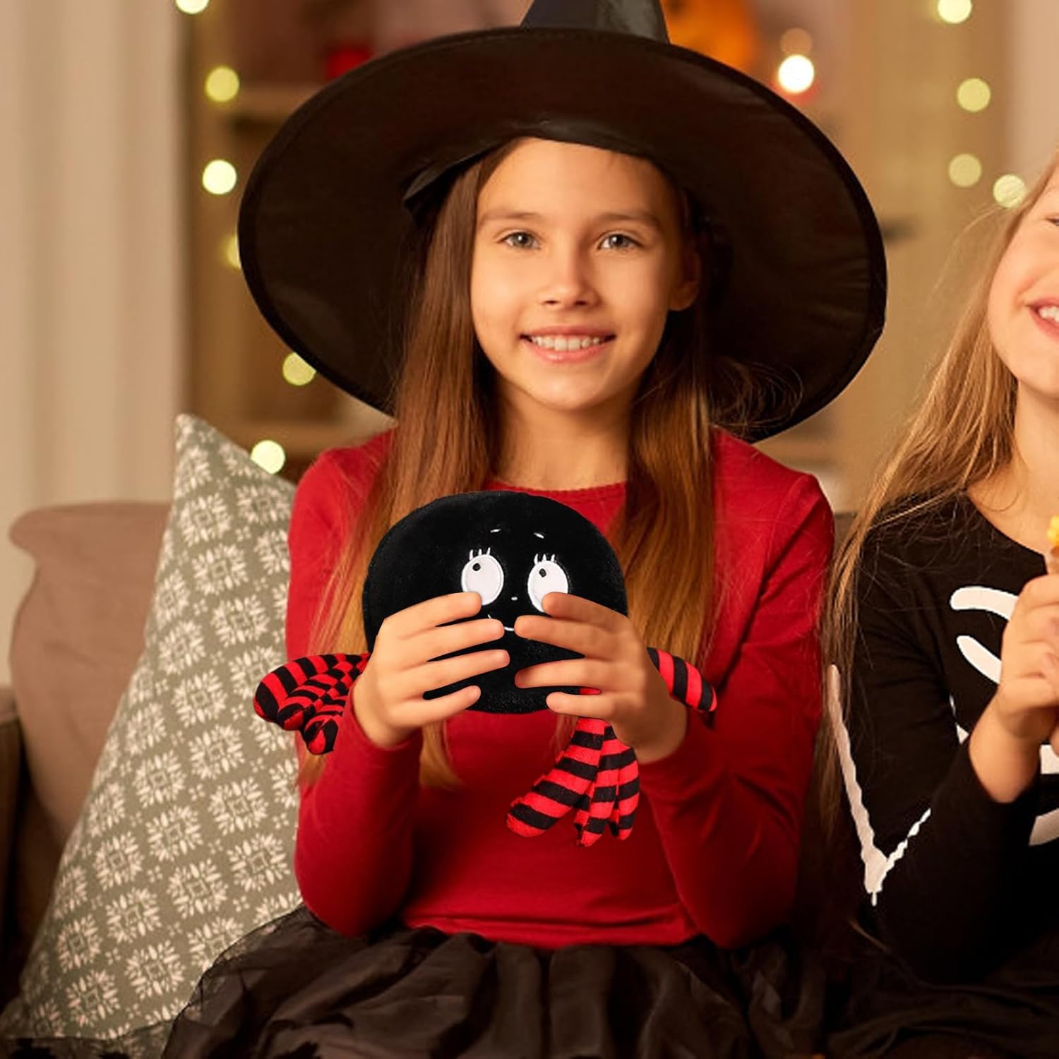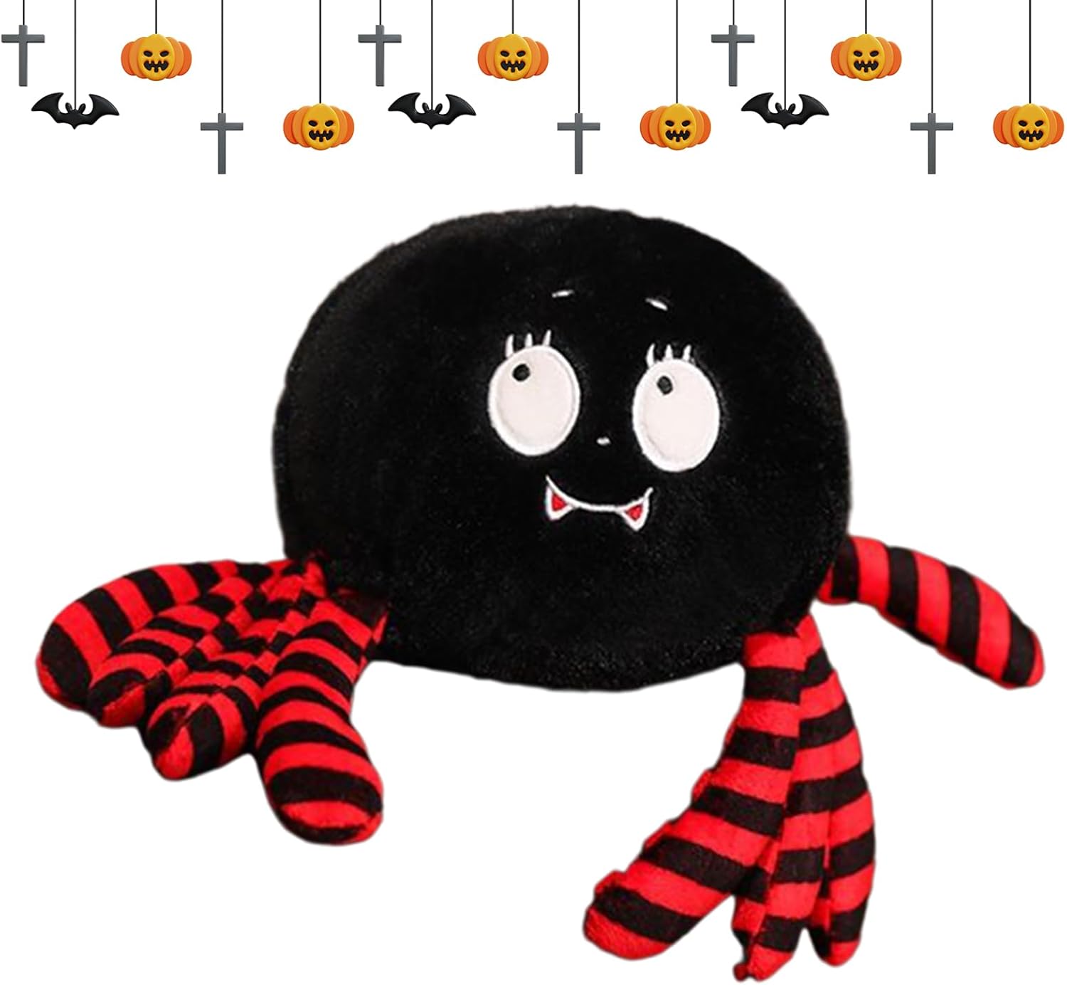 Morbidezza accogliente: la miscela di materiale delicato sulla pelle in breve volo e cotone PP dona una delicata sensazione calmante e un comfort perfetto per momenti di relax Pratica soluzione di visualizzazione: fornisce un dispositivo a ventosa affidabile per una presa stabile su diverse superfici, semplifica l'appesa e la disposizione variabile delle decorazioni in tessuto morbido di Halloween Decorazione di Halloween: questo morbido peluche è realizzato con giocosi motivi di Halloween e porta in vita lo spirito delle vacanze. È un complemento ideale per diffondere un'atmosfera stagionale divertente e festosa ovunque ed è perfetto come un gioco spaventoso per la tua casa o la tua festa. Regalo ideale per le occasioni: scelta perfetta per feste e celebrazioni, questo peluche porterà grande gioia alla famiglia e agli amici e dona a ogni momento speciale con calore caldo e giocosità senza complicazioni Grande versatilità: in studio, camera da letto, soggiorno o cameretta dei bambini, questo peluche di Halloween è molto versatile. Offre una soluzione di decorazione flessibile per la stagione spaventosa e diffonde facilmente l'atmosfera di Halloween nella tua casa.