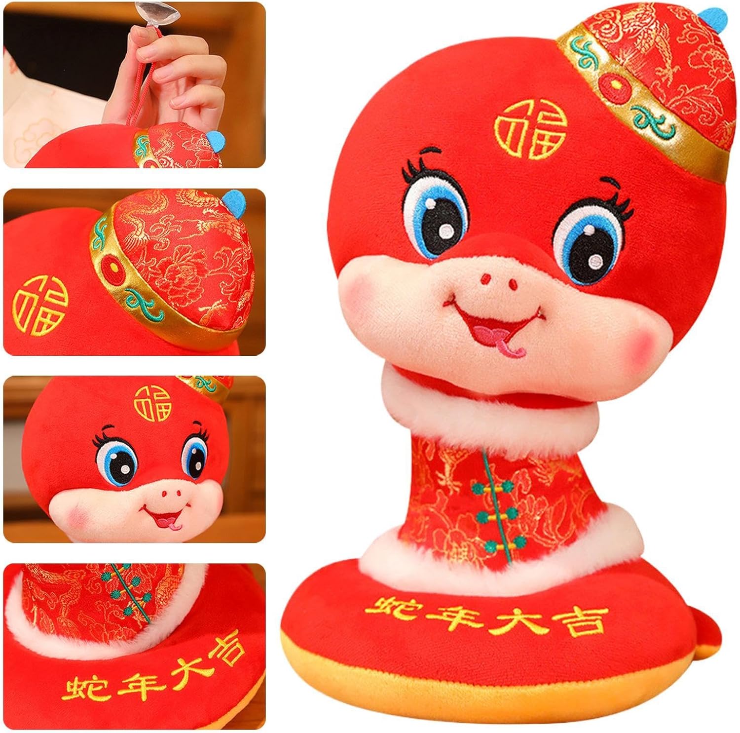 Accogliente e morbido: adatto non solo ai bambini ma anche agli adulti, questo peluche Snake Year, realizzato in materiale peluche, garantisce un tocco morbido e accogliente con un'eccellente sensazione al tatto, rendendolo un giocattolo per bambole ideale per tutte le età Potenziatore di gioia festiva: induci lo spirito natalizio con questo peluche 'Anno del Serpente, una grande aggiunta al tuo arredamento festivo per portare gioia ed eccitazione a qualsiasi riunione Ampia Gamma di Applicazioni: Ideale per il soggiorno o la camera da letto, questo peluche celebra l'Anno del Serpente 2025, vantando un'ampia gamma di applicazioni dal divano al letto Esecuzione squisita: ottimo per celebrare l'Anno del Serpente nel 2025, questo peluche vanta dettagli intricati e ottima fattura. La costruzione di alta qualità garantisce l'assenza di sbavature e prestiamo grande attenzione ad ogni dettaglio, rendendo questo giocattolo un oggetto da collezione indispensabile che durerà per anni Regalo straordinario: migliora le occasioni speciali come le vacanze, l'anno cinese o i compleanni con il simbolico peluche 'anno del serpente. Questo peluche porta con sé l'amore e le benedizioni di un serpente, rendendolo il grande regalo per famiglie, amici e amanti