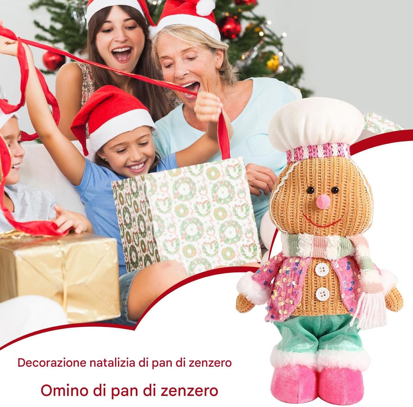 Morbidezza Delicata per Tutti: Il materiale delicato sulla pelle e il ripieno generoso donano una sensazione di comfort unica, perfetta per migliorare il relax sia come compagno di sonno che come decorativo per il salotto. Design Capriccioso Unico: Realizzato con dettagli fantasiosi ed espressioni vivaci, questo omino di pan di si integra perfettamente nelle decorazioni festive, esaltando il fascino gioioso delle tradizioni natalizie con un tocco di calore e allegria per ogni ambiente Delizia Giocosa: Caratterizzato da un design arancione brillante e allegri colorati, questo peluche emana tenerezza con il suo stile da cartone animato, diffondendo gioia in ogni interazione Compagno di Scrivania Incantevole: Questo pupazzo di pan di è ideale per aggiungere un tocco di calore e allegria alla tua postazione di lavoro, abbellire diverse ambientazioni domestiche, creare un'atmosfera fiabesca sui davanzali e diventare un elemento festoso irresistibile durante le feste e le decorazioni tematiche Caratteristiche Child-Friendly: La forma con bordi arrotondati e le cuciture precise migliorano la durata del peluche eliminando i rischi, assicurando un gioco sicuro e piacevole per i bambini piccoli in ogni momento della giornata