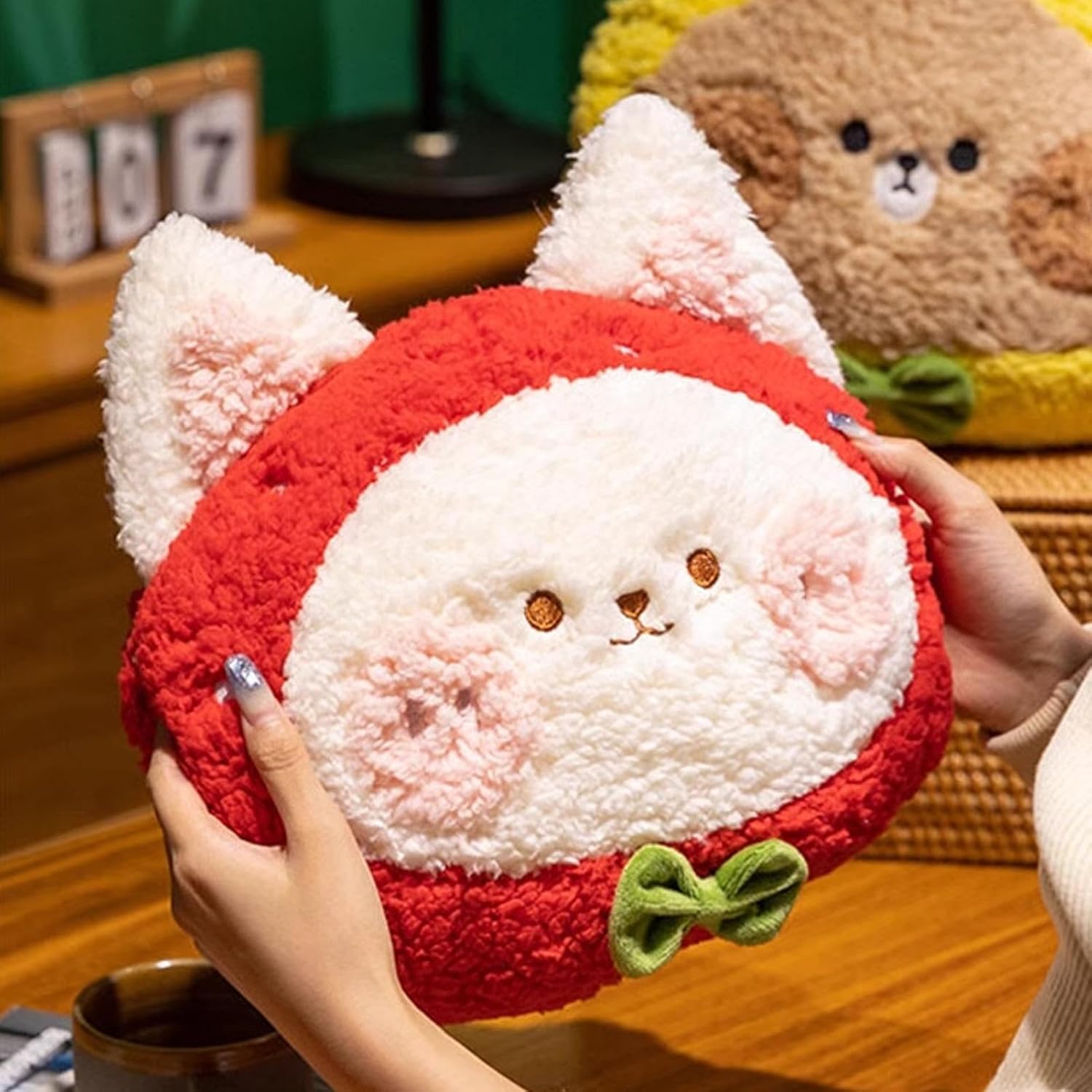 Supporto Non Irritante: Il Plush offre una morbidezza calmante e rilassante con materiale peluche di alta qualità, creando un'area confortevole e senza irritazioni perfetta per l'uso quotidiano o per la decorazione degli spazi living, aggiungendo stile e benessere alla casa con una texture piacevole e duratura. Fascino Speciale Gatto Fragola: Grazie al motivo adorabile di gatto fragola, il Peluche crea un'atmosfera divertente perfetta per il riposo o la decorazione; il design cattura l'attenzione e porta calore a camere da , soggiorni o aree gioco bambini con facilità, offrendo un complemento d'arredo accattivante che infonde gioia e relax in ogni situazione domestica senza sforzo Il Regalo Straordinario: Il Morbido agisce come un regalo versatile e prezioso per famiglia e amici durante compleanni, festività o riunioni. Offre comfort e connessione emotiva, contribuendo a creare ricordi duraturi in qualsiasi scenario celebrativo o occasione personale significativa, grazie alla sua natura accogliente e affettuosa che arricchisce i momenti di condivisione. Caratteristica Pratica del Calore: Progettato per un uso multifunzionale, questo peluche offre due benefici principali: agisce come un soffice per il supporto e come un accessorio riscaldante per i momenti più freddi. Assicura una convenienza aggiuntiva durante le attività di tutti i giorni o le routine serali, portando calore e comfort ovunque tu sia. Uso Esteso e Pratico: I cuscini morbidi per divano uniscono comfort e praticità, integrandosi facilmente in ambienti come il soggiorno, lo studio, la camera da o la zona notte. Offrono un supporto versatile e migliorano le esperienze di relax quotidiano, grazie alla loro morbidezza e capacità di adattarsi a diverse situazioni per un comfort costante in tutta la casa.