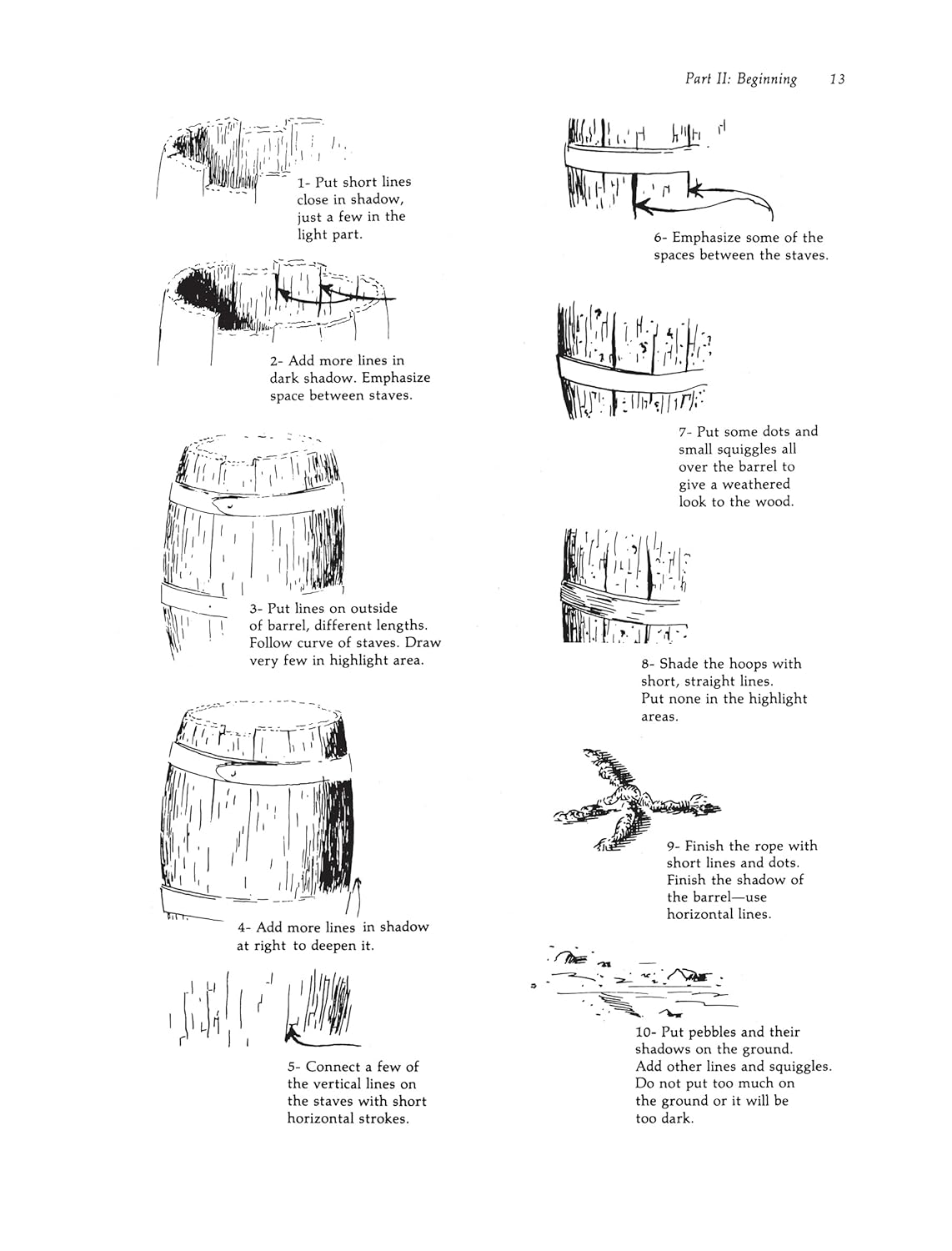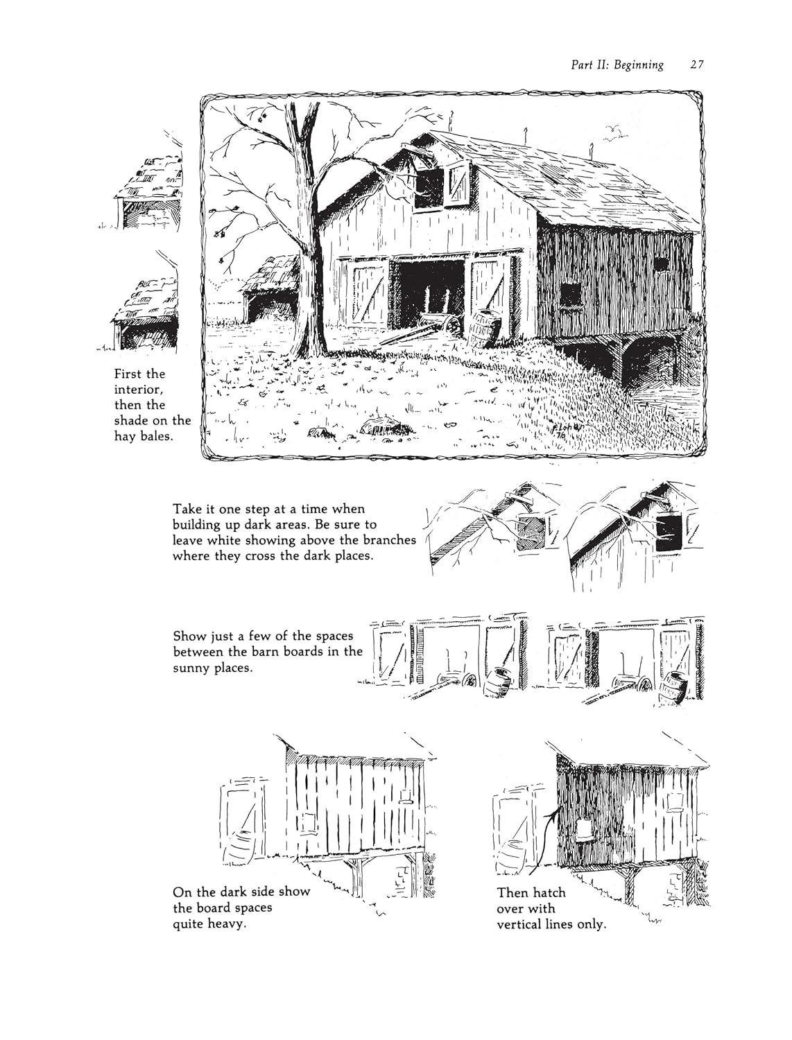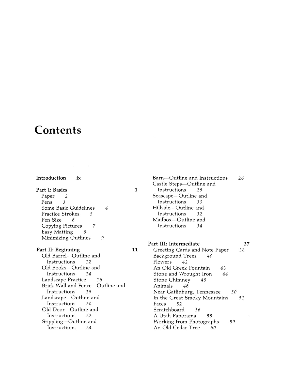 Un excellent livre (en anglais) pour débuter à l'encre (plume ou fineliner) Personnellement, ce sont les livres de Frank Lohan qui m'ont donné le goût du dessin à l'encre. Celui ci et Drawing Florida Wildlife (qui est un cahier d'exercices, pas un manuel) ont été mes deux premiers livres de cet auteur et se complètent très bien. Comme il le dit lui même en introduction, les démonstrations du livre n'ont pas vocation à être des chefs d'oeuvre, ce sont des exercices, avec certains gestes sciemment exagérés et parfois surchargés, afin d'être bien compris et vus des personnes qui débutent, et de regrouper le plus de techniques en un seul dessin. Le propos est pédagogue, encourageant, sans superflu. L'auteur entend nous apprendre par l'exemple plus que par la théorie, et ça me convient parfaitement, je prends plaisir à m'exercer sur des sujets qui me plaisent vraiment, comme le milieu rural, les vieilles granges, les plantes, les oiseaux, les paysages, des thèmes dans lesquels l'auteur excelle. Le livre est divisé en quatre parties : 1 - les basiques, matériel, techniques de base, théorie 2- les sujets pour débuter (au nombre de 11) qui sont simples et très bien expliqués, en détail, pas à pas, mais demandent tout de même patience et persévérance (pour vous donner une idée, le tonneau qu'on voit dans l'extrait de l'éditeur est le tout premier exercice) 3 - les sujets pour niveau intermédiaire, plus élaborés et avec des explications moins détaillées 4 - les sujets de référence pour les personnes déjà bien aguerries, sans pas à pas, mais avec quelques notes et focus sur certains points particuliers. Il existe d'autres ouvrages plus théoriques sur l'encre, qui font office de références, et que j'ai achetés ou empruntés, mais je n'ai jamais accroché avec. Idem avec les quelques ouvrages plus récents, dont les sujets m'ennuient (les objets du quotidien, typiquement : baskets, chapeau, grille pain et j'en passe) Du coup, j'en reviens toujours à Lohan, qui sait me donner envie de dessiner.