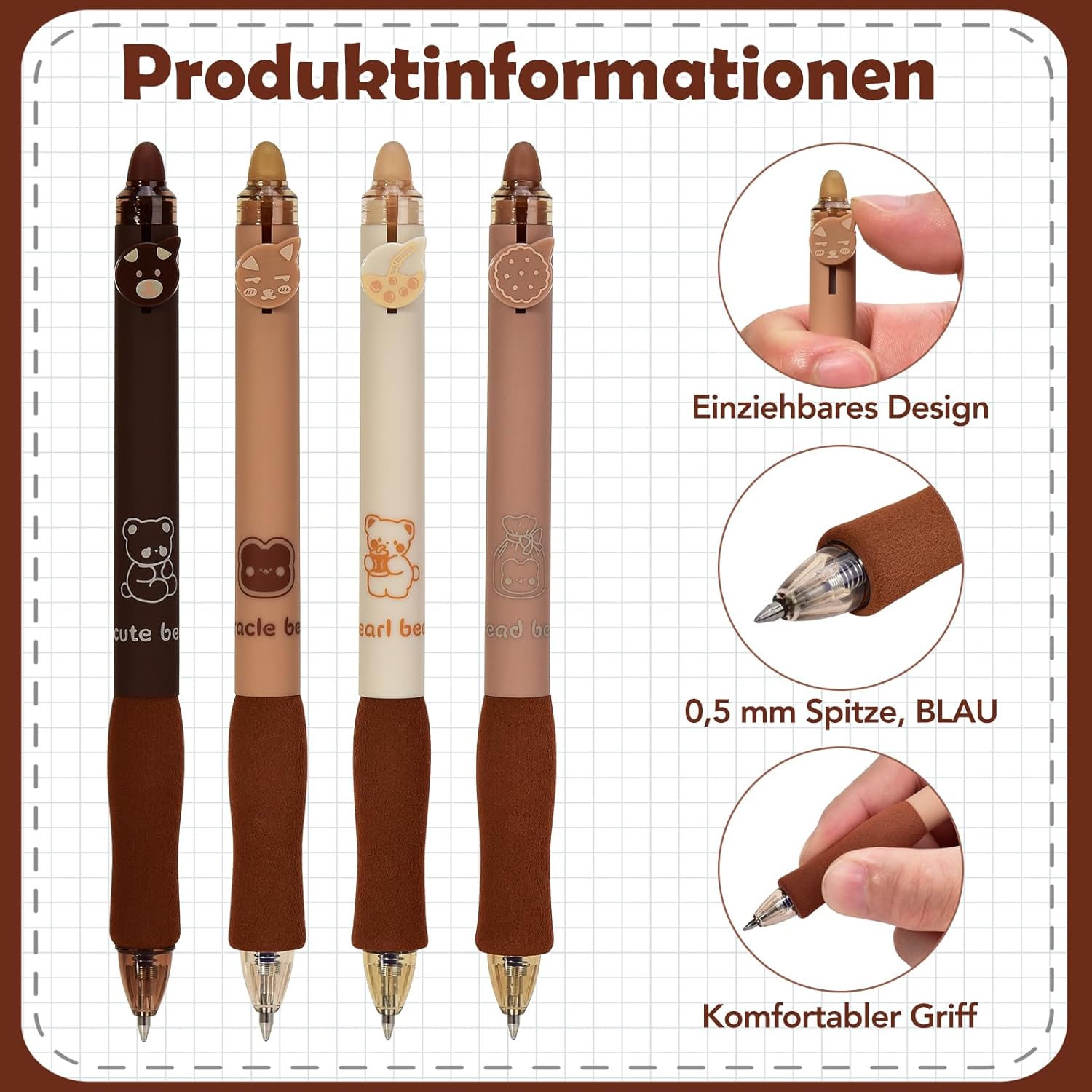 Piacevolmente morbida: l'impugnatura gommata della nostra penna a sfera cancellabile, con impugnatura morbida, garantisce una scrittura comoda e precisa e consente una scrittura morbida e perfetta Scrittura fluida: 4 penne gel blu cancellabili da 0,5 mm, punta a sfera a inchiostro liquido, asciugatura rapida, il portapenne può essere riutilizzato a lungo, questa è la scelta migliore per insegnanti, studenti e impiegati Regalo perfetto per studenti: questo è un regalo perfetto per l'inizio della scuola, Halloween, Ringraziamento, Natale, calendario dell'Avvento, Pasqua, compleanni, ecc. Adatto per prendere appunti, scrivere compiti, firmare, disegnare, ecc Speciale design dell'inchiostro cancellabile: è possibile eliminare gli errori con la semplice frizione della sfera alla fine (si prega di notare: si prega di non utilizzarlo per importanti documenti ufficiali come contratti, documenti legali, documenti di esame, ecc.) Penna gel cancellabile: se scrivi sempre errori di battitura accidentali, queste cancellabili Kuli sono la scelta migliore. Cancellare questi senza lasciare tracce e non danneggia la carta, lascia che la superficie del rotolo sia pulita come prima