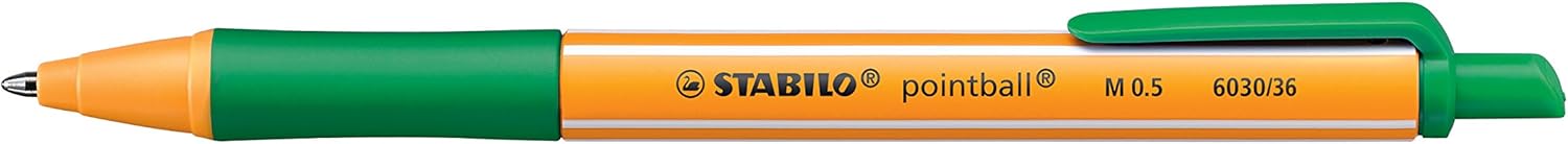 Penna a sfera Stabilo Pointball Prodotto da 79% di plastica riciclata. Con penna a sfera pasta estremamente morbido per una scrittura veloce. Dopo riempimento Bar con Stabilo Ball Point Refill Esecuzione mina: 0,5 mm, colore: Verde, mina intercambiabile Colore del fusto: colore arancione con striscia bianca con bordi e combinazione della scrittura Esecuzione clip: plastica clip, nel colore inchiostro