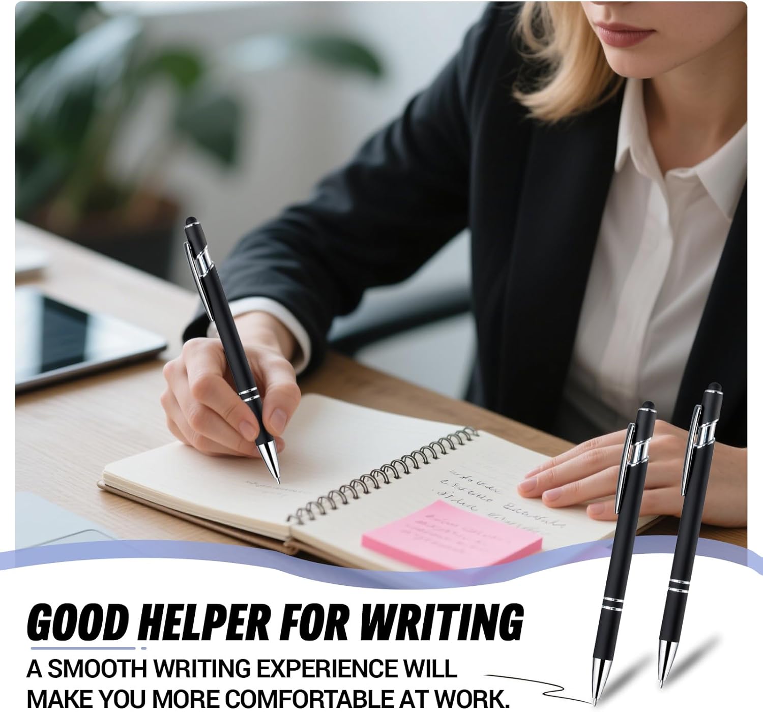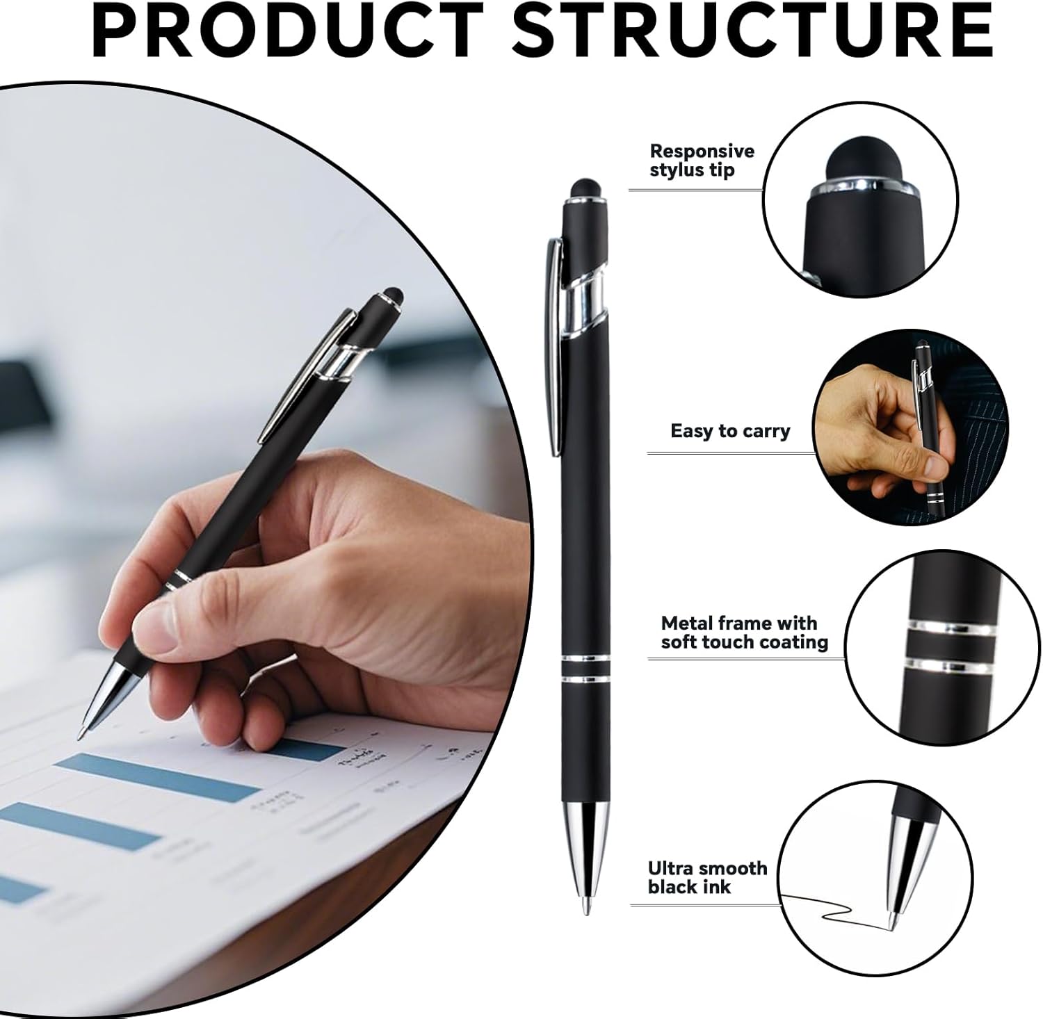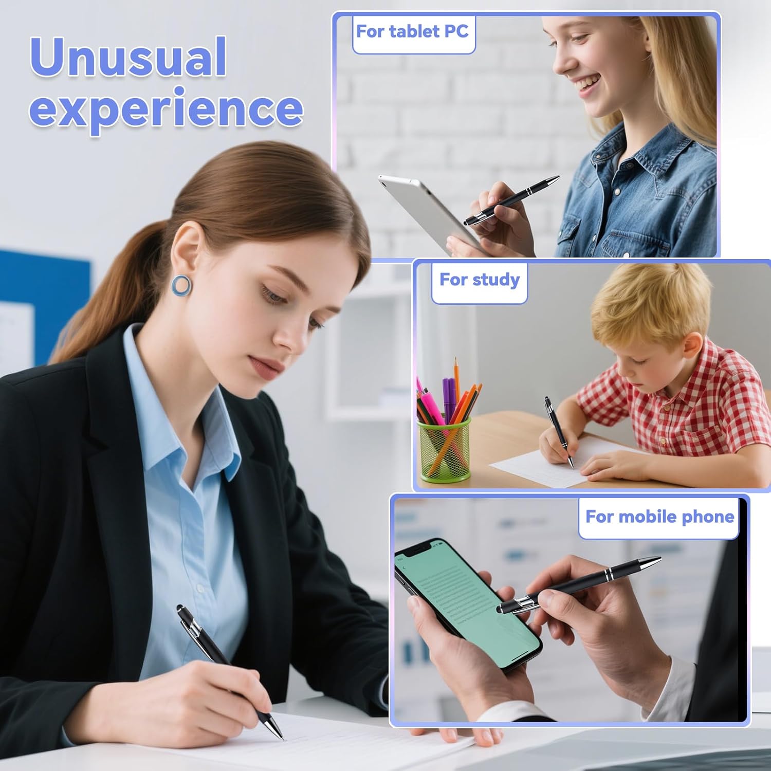 Penna di stilo 2 in 1: (Penna a sfera del touchscreen + Penna), un'estremità contiene uno stilo sensibile per il touchscreen. Premere la punta in gomma, estendere la penna a sfera di inchiostro nero dall'altra parte, scrittura duratura e liscia. Con 12 ricariche di inchiostro nero sostituibili, le ricariche della penna a sfera possono essere facilmente sostituite. Materiale di qualità: la penna a stilo metallico ha un corpo sottile ed elegante, realizzato in alluminio robusto, abbastanza resistente da resistere all'uso approssimativo. Il mini stilo è progettato con una clip, una funzione anti-roll, leggera e può essere facilmente tagliato su valigie, tasche, libri, diari, ecc., Ottimo per convenzioni, fiere, feste e molto altro ancora. Scrittura fluida e coerente: dotate di ricariche di inchiostro nero a getto di alta qualità, queste penne offrono un'esperienza di scrittura regolare e coerente. Che tu stia scrivendo note importanti o compilando documenti, puoi fare affidamento su inchiostro chiaro e leggibile che scorre uniformemente ogni volta. Penna antis-scratch sensibile: la penna stilo touchscreen è dotata di una delicata punta di gomma morbida per touch screen capacitivo, che può proteggere lo schermo da graffi e non lasciare impronte digitali. Puoi usare questa penna per prendere appunti sul tablet, sul telefono o sullo schermo del computer, facile da usare. Penne regalo perfette: 2 su 1 stilo con penna è ottimo per bambini, studenti, insegnanti, amici, uomo d'affari ecc., Nice come regalo di compleanno o regalo per le vacanze per un cliente, un collega, un matrimonio, le penne retrattili a inchiostro nero sono veloci e utili per medici e infermieri.