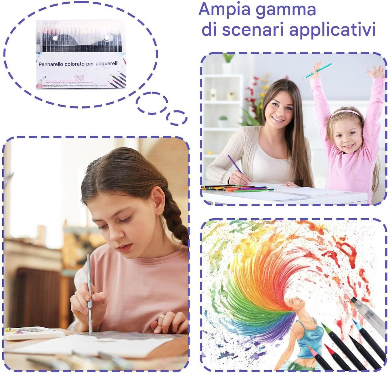 Strumenti per Tutta la Famiglia: Grazie alla formula sicura per bambini e ai materiali non tossici per animali, i pennelli ad acqua assicurano una finitura opaca antiscivolo per una presa comoda a lungo termine, senza odori forti, ideali per l'uso creativo a qualsiasi età. Set Versatile: Pennelli pronti per regalo, studiati per artisti e principianti. Offre dimensioni multiple migliorando ogni collezione artistica con la sua adattabilità a diverse tecniche creative. Pulizia pratica con acqua:Pennelli che si puliscono facilmente con sola acqua, mantenendo la forma e setole per un utilizzo ripetuto e prestazioni affidabili. Caratteristica ideale per artisti e hobbisti. Versatilità Artistica: Realizza dettagli floreali intricati e opere astratte audaci con penne ad alta pigmentazione, offrendo grande fusibilità e tecniche di stratificazione vibrante per valorizzare la tua arte. Precisione Flessibile: Progettati per l'arte ', garantiscono funzionalità e gestione cromatica accurata con punte flessibili in ogni tecnica