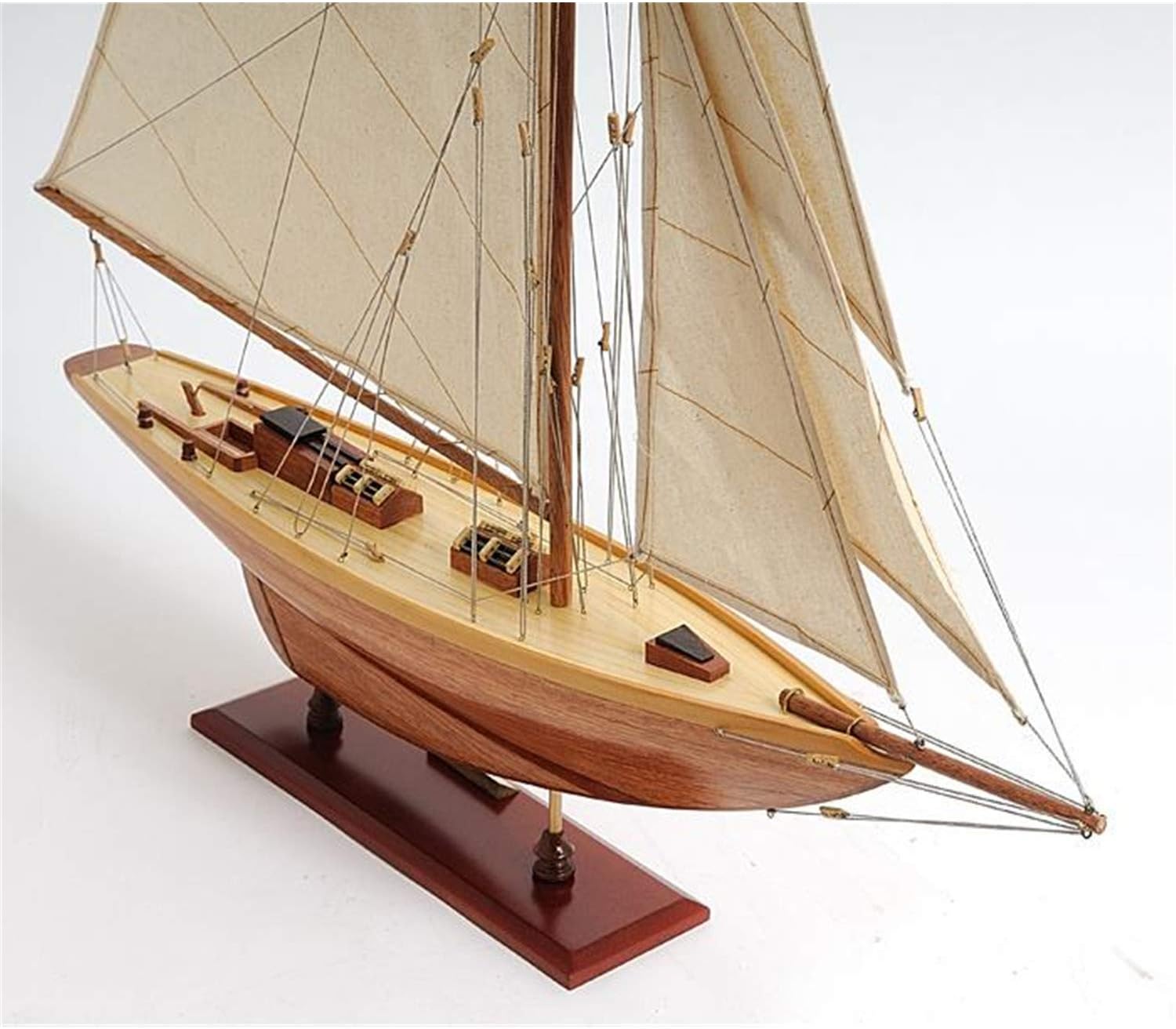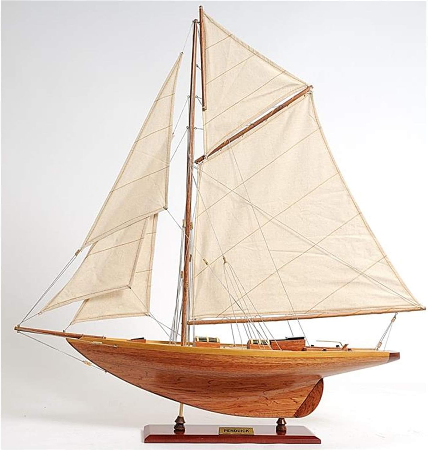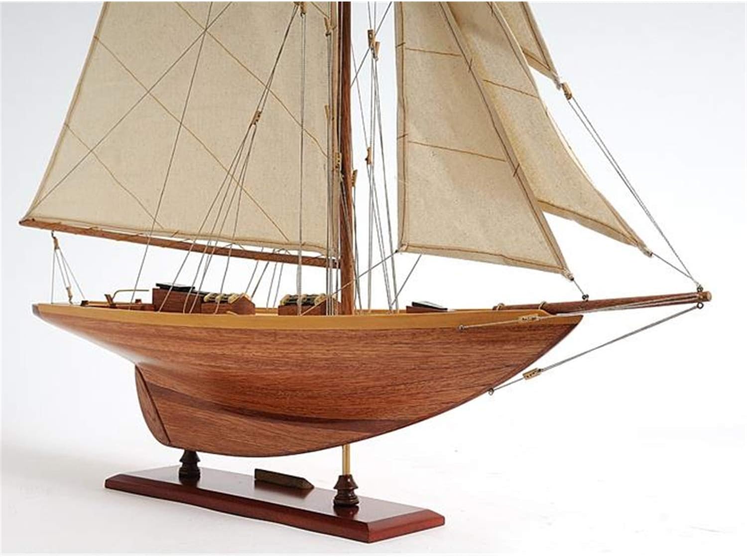 Pen Duick Dimensioni: il modello di barca in legno di Old Modern Handicrafts misura 28,5 L x 5,0 W x 31,5 H pollici e viene montato saldamente su una base in legno massello con una targhetta in ottone. Materiali: il modello in scala di Old Modern Handicrafts è costruito utilizzando legno di alta qualità, tra cui cedro rosso occidentale, palissandro e mogano, scelto per la loro qualità e autenticità. Costruzione: Il modello di barca a vela è costruito in scala utilizzando il metodo di costruzione plank-on-frame, rispecchiando il processo di costruzione delle navi reali. Comporta centinaia di ore di lavoro meticoloso. Caratteristiche e design: il modello di barca in legno presenta uno scafo in legno artigianale, un ponte finemente dettagliato con portelli, verricelli e una cabina, una vela in metallo cucita con ribaltatore e intricato sartiame. Decor: Il modello di barca Old Modern Handicraft con i suoi squisiti dettagli e materiali eleganti, è un sofisticato pezzo d'arredo, perfetto per valorizzare qualsiasi spazio con un tocco di lusso nautico.