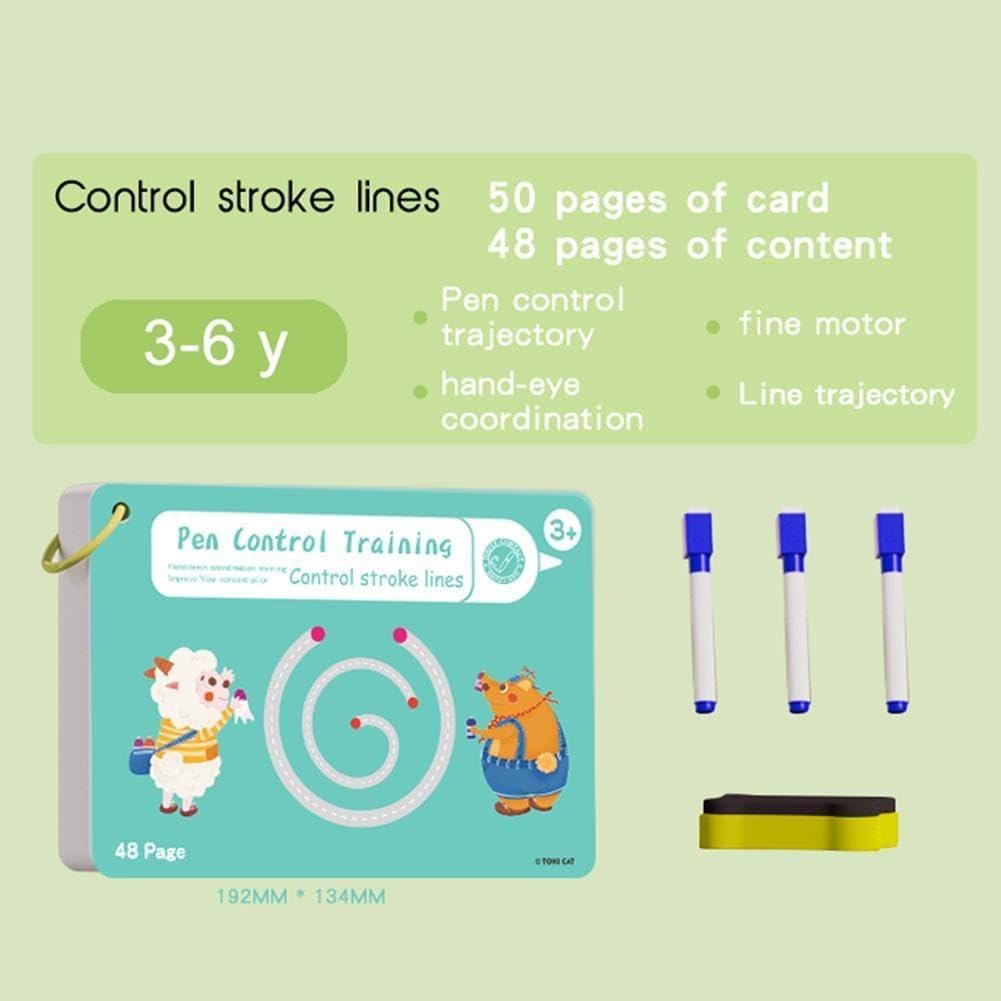 Praticità: le carte sono cancellabili, rendendo facile per gli utenti esercitarsi e rivedere più volte per affrontare le loro carenze. Considerando i bisogni dei bambini, le carte di formato sono state accuratamente progettate e regolate per essere ergonomiche e facili da trasportare e riporre. Questo rende il prodotto non solo facile da usare, ma ha anche una buona portabilità. Coltivare buone abitudini: concentrarsi sul miglioramento della concentrazione e della pazienza dei bambini, attraverso la pratica quotidiana regolare, non solo rafforza le conoscenze di base, ma sviluppa anche inavvertitamente la persistenza e l'autodisciplina delle buone abitudini, ponendo le basi per l'apprendimento permanente. Formazione delle abitudini: incoraggiando la pratica regolare, queste carte aiutano a migliorare la concentrazione e la pazienza, instillando abitudini persistenza e autodisciplina che gettano una solida base per l'apprendimento e lo sviluppo lungo tutto l'arco della vita. Progressione scientifica: con esercizi accuratamente progettati, i bambini possono progredire attraverso 50 pagine e 25 esercizi passo-passo, su misura per adattarsi a diverse fasce di età e supportare lo sviluppo graduale delle abilità. Esperienza di apprendimento interattiva: 3 penne e 1 gomma per lavagna sono incluse nel libro, che incoraggia i bambini a fare pratica e divertirsi imparando attraverso ripetuti scarabocchi, promuovendo allo stesso tempo lo sviluppo della coordinazione occhio-mano e del pensiero.