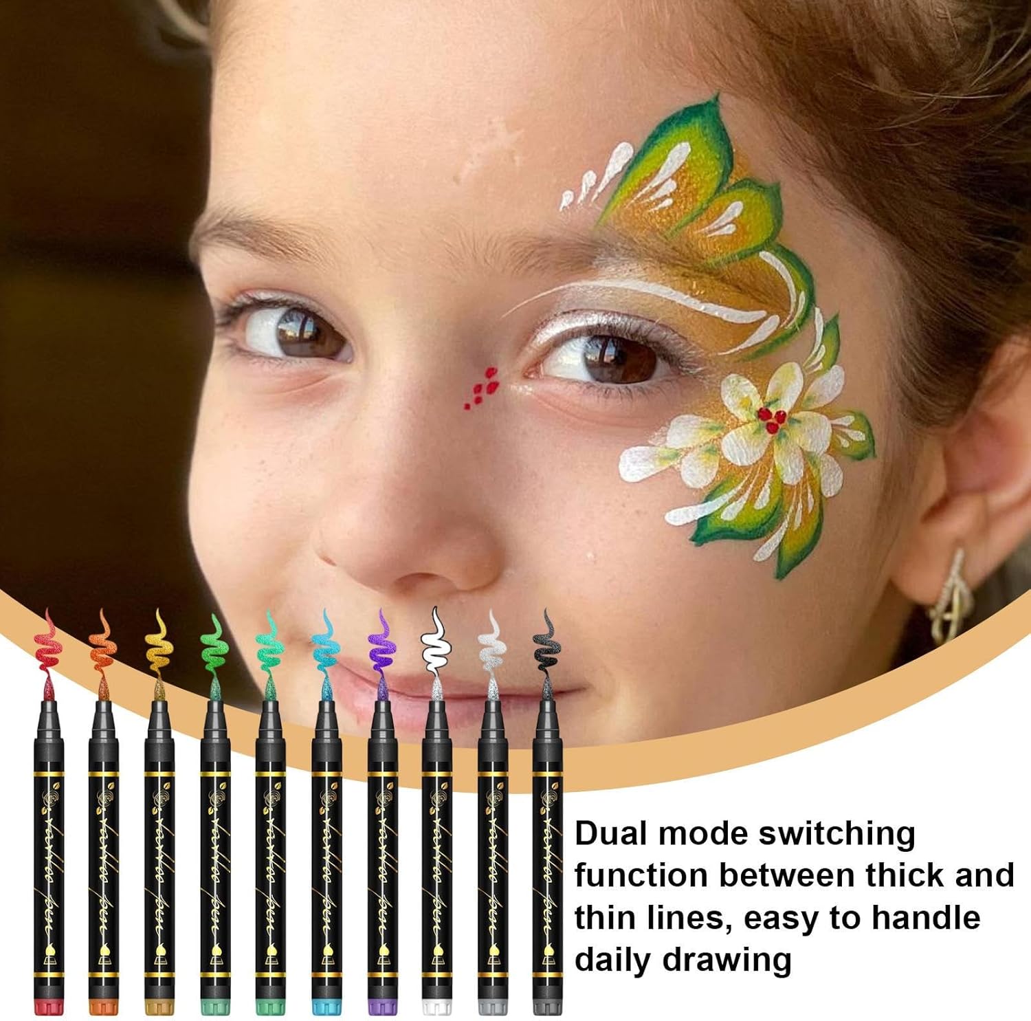 Precisione Creativa:Ottieni effetti finali accurati con spessore regolabile e contorni predisegnati, per un'espressione creativa che soddisfa le aspettative artistiche senza sforzo. Contiene 228 caratteri Facile pulizia: Formula delicata e lavabile compatibile con acqua e sapone o struccante, si rimuove senza da ogni tipo di pelle senza irritazioni per progetti artistici quotidiani Ambiti Applicativi: Con 10 pennarelli per soddisfare necessità decorative, perfetti per creazione di pattern versatili in progetti artistici multidisciplinari e disegno regolare Precisione Affidabile: Puntina larga garantisce stabilità nella presa e tratto scorrevole, producendo linee nitide attraverso erogazione uniforme 'inchiostro Versatilità di Fusione: Progettati per essere versatili, questi 10 marker ad alta carica pigmentata possono essere sovrapposti o mescolati per intensificare gli effetti visivi, strumento essenziale per l'espressione creativa libera.