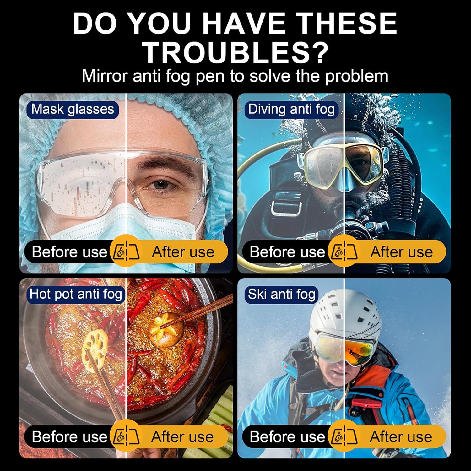 Molto adatto a portatori di occhiali per studenti, professionisti, appassionati di outdoor e operatori sanitari. Realizzato in PP, questo strumento multifunzionale è un must per chiunque cerchi praticità ed efficienza nella cura delle lenti trasparenti. Grazie agli applicatori facili da usare, questa penna è delicata su diversi tipi di lenti. Visione chiara con la nostra penna antiappannamento, appanna rapidamente gli occhiali e garantisce una visione chiara in qualsiasi condizione atmosferica. Ampiamente usato per gli spostamenti quotidiani, le attività sportive, il nuoto, lo sci, lo snowboard, la cucina o da indossare per una visione ininterrotta.