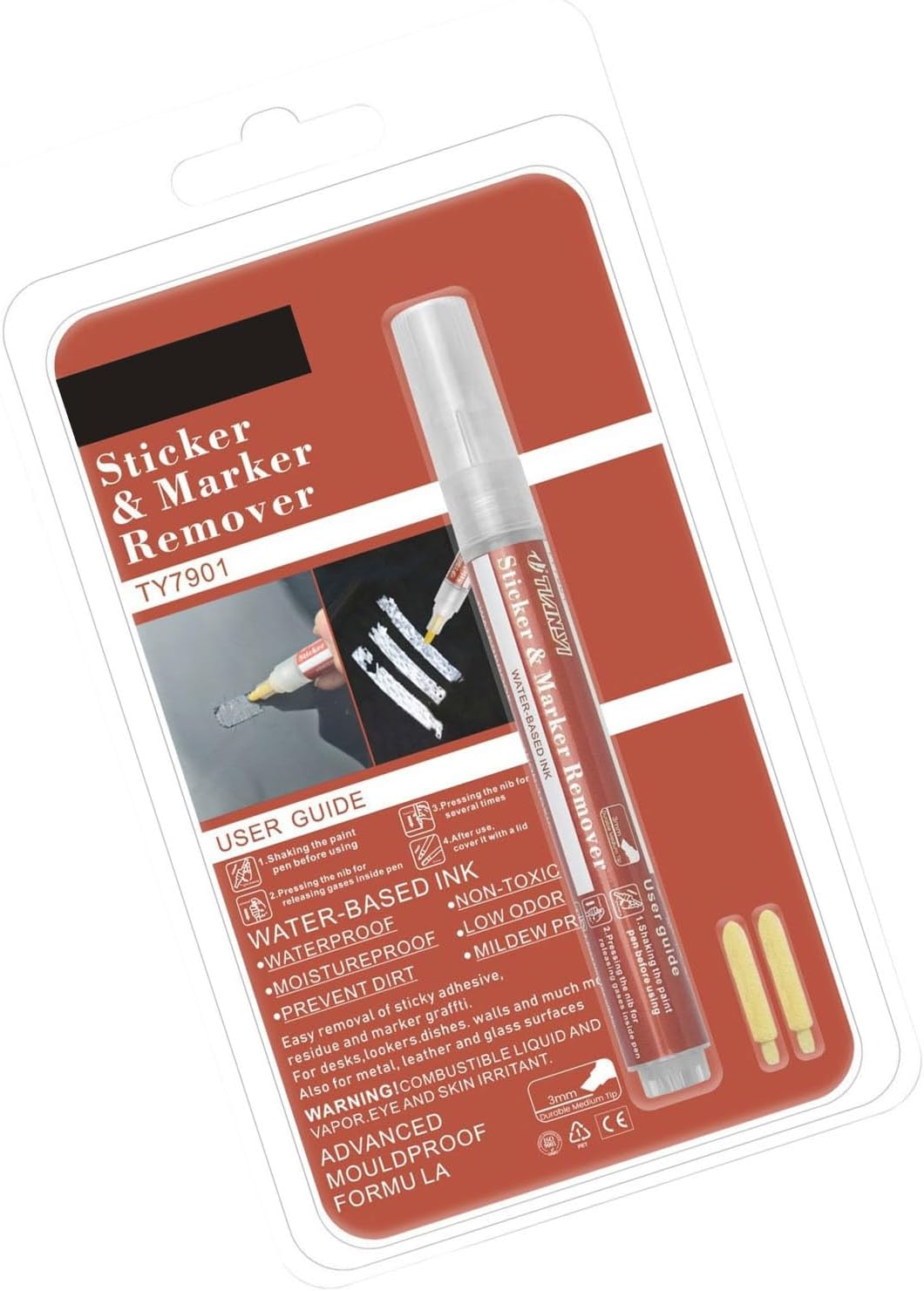 La comodità del nostro solvente adesivo con design a pennarello. Questo solvente adesivo rimuove adesivi e residui di adesivi su scrivania, armadietti, stoviglie, frigorifero, porte, finestre, pareti. Forte rimozione adesiva, nessun residuo, molto adatto a studenti, insegnanti, casalinghe, appassionati di scrapbooking. Compatto e portatile, lo rende un must per il tuo kit di attrezzi domestici. Facile da usare, basta modellare la penna per rimuovere adesivo e premerla per lavorare, impiegare qualche minuto e pulire le superfici. Rimuovi facilmente adesivi, adesivi, etichette, nastro biadesivo, residui di adesivo da varie superfici, come vetro, metallo, ceramica, pelle.