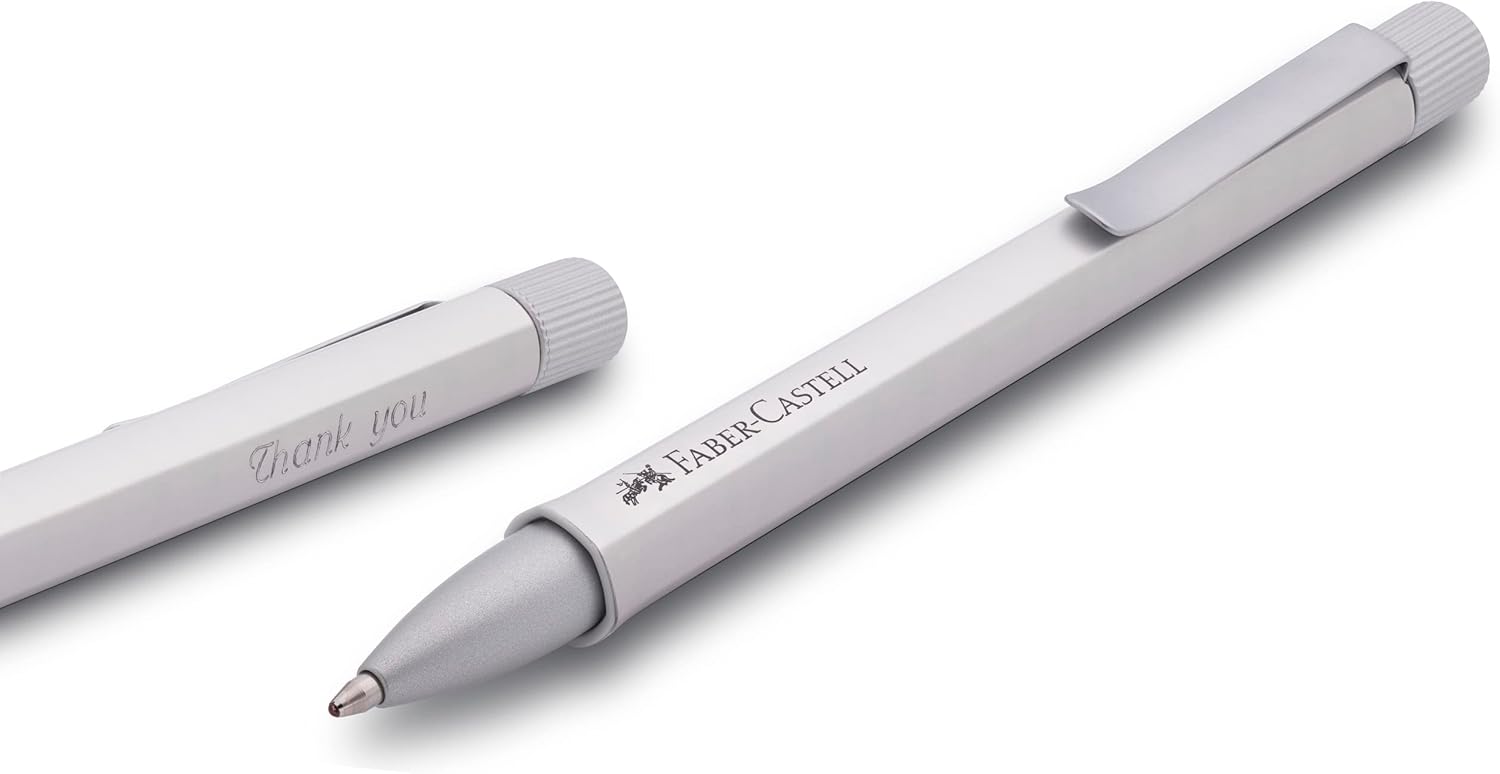 Penna roller in argento del marchio Faber Castell della serie Hexo. Con la sua forma esagonale, offre prospettive completamente nuove alla scrittura creativa, allo scarabocchio e alla progettazione. Gli strumenti da scrittura della serie Faber-Castell Hexo colpiscono per la loro forma esagonale, sia in termini di aspetto che di sensazione. La ricarica è intercambiabile e può essere utilizzata anche con una ricarica fineliner. La penna roller ha una ricarica nera con punta in ceramica e ha un inchiostro ad asciugatura rapida