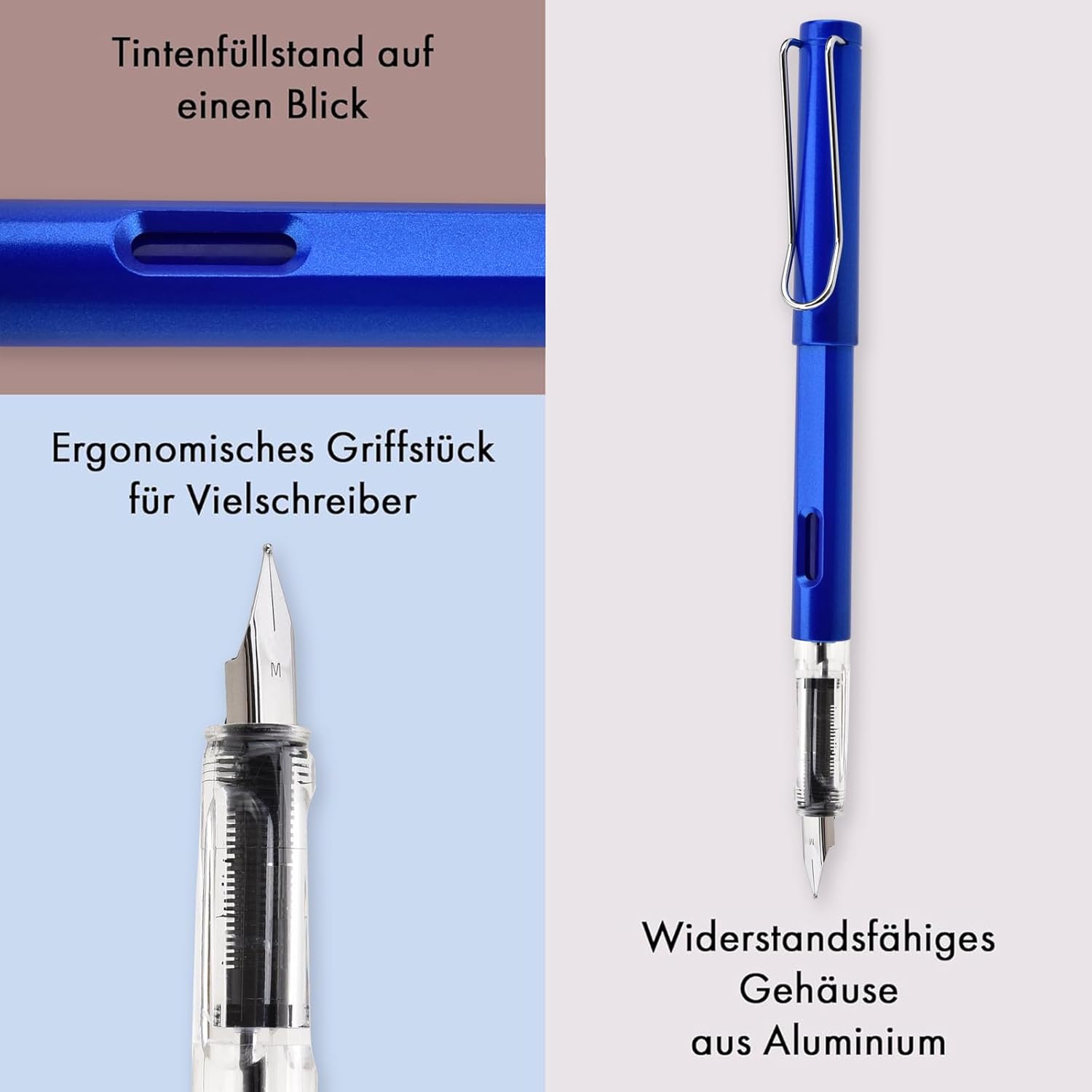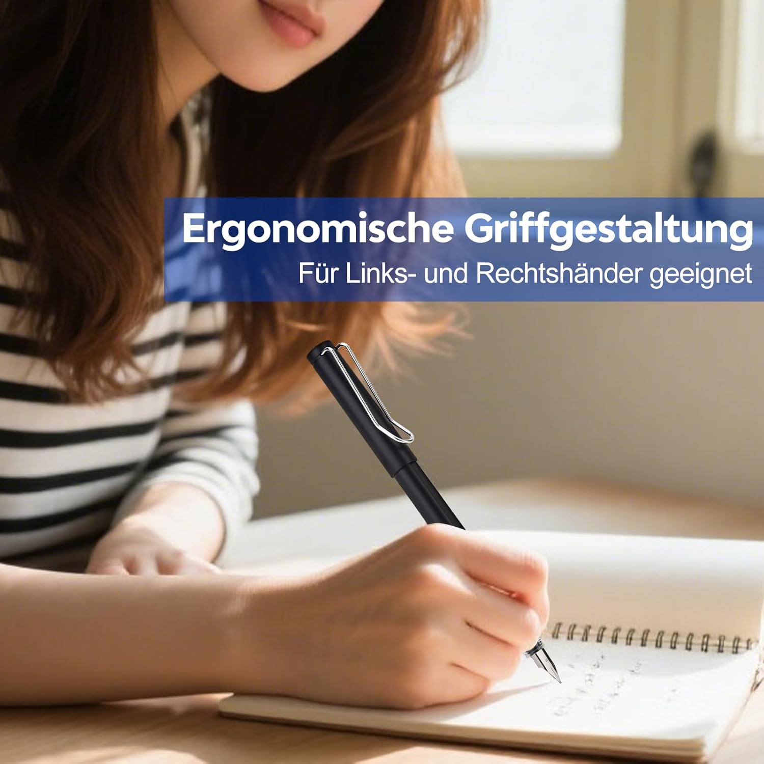 Adatta per mancini e destrorsi: grazie all'impugnatura ergonomica, la penna LVZONGXIN è comoda da tenere in mano, non importa se si scrive a destra o a sinistra. Ideale per scrivere più a lungo Senza cancellare l'inchiostro: la penna LVZONGXIN è una penna stilografica cancellabile termicamente: con la punta in silicone all'estremità della penna l'inchiostro può essere facilmente cancellato – in modo pulito, veloce e immediatamente riscrivibile Non ha paura di errori: che si tratti di note, compiti o saggi: la penna stilografica cancellabile termicamente è ideale per tutte le età. Con la penna stilografica si può scrivere bene e gli errori possono essere facilmente cancellati e passati direttamente Cartuccia d'inchiostro standard (Ø 3,4 mm) : lunghezza: 5 cm, lunghezza di scrittura: 700 m (secondo lo standard ISO). Controllare la precisione della penna stilografica ▸ tramite istruzioni per l'uso o ▸ misurando la cartuccia originale. Calibro sbagliato → Perdita/impossibilità di montaggio Cartuccia d'inchiostro riutilizzabile: con le cartucce di inchiostro riciclabili, la nostra penna Fountain è un investimento sostenibile nel nostro ambiente. La penna stilografica cancellabile è adatta per destrimani e mancini e può essere utilizzata anche con cartucce standard