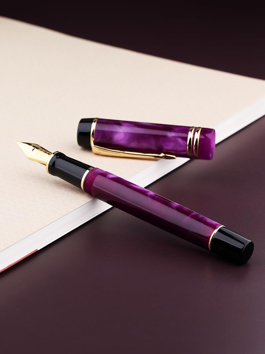 Penna stilografica in resina Iridium EF 0,38 mm/F 0,5 mm pennino con inchiostro, penna regalo per materiale scolastico per ufficio, cancelleria (viola, argento)