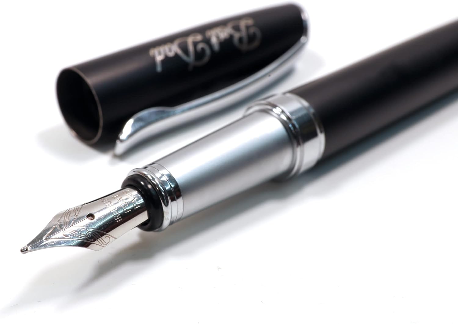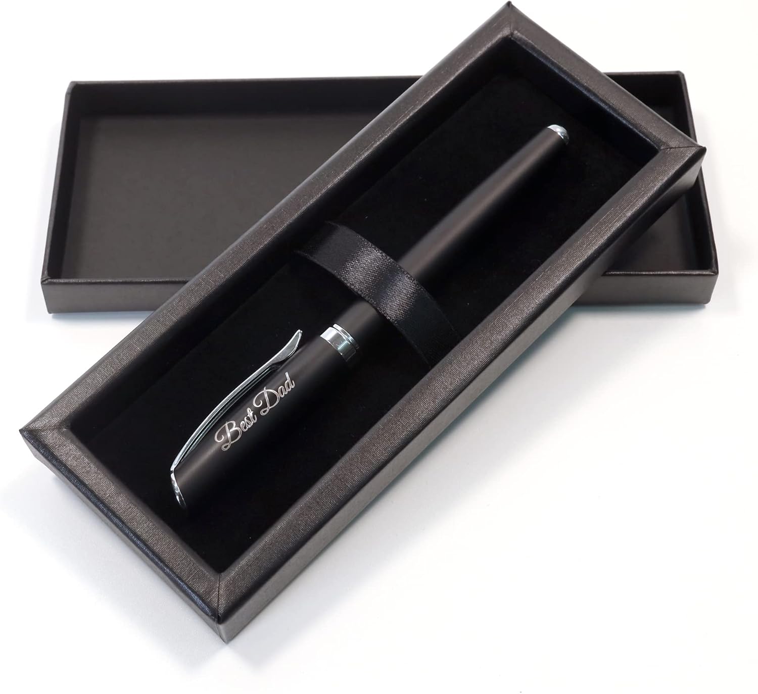 GRANDE IDEA REGALO - Personalizzato con il vostro testo personalizzato, inciso con precisione al laser e confezionato in un'elegante scatola regalo nera. È un regalo perfetto per compleanno, anniversario, laurea, San Valentino, festa del papà, ecc. STYLISH - Esclusiva penna in metallo dal design nero opaco e dalle finiture di pregio. L'aspetto e la sensazione sono ottimi. ERGONOMICA - Peso solido e forma ergonomica per una sensazione di scrittura soddisfacente PREPARAZIONE RAPIDA - La maggior parte degli ordini viene incisa e spedita lo stesso giorno lavorativo se ordinata entro le ore 13.00. SPECIFICHE: Stilografica in metallo nero satinato, confezione regalo nera, cartuccia d'inchiostro nera o blu inclusa; peso: 30 g, lunghezza: 140 mm, diametro: 11,8 mm.