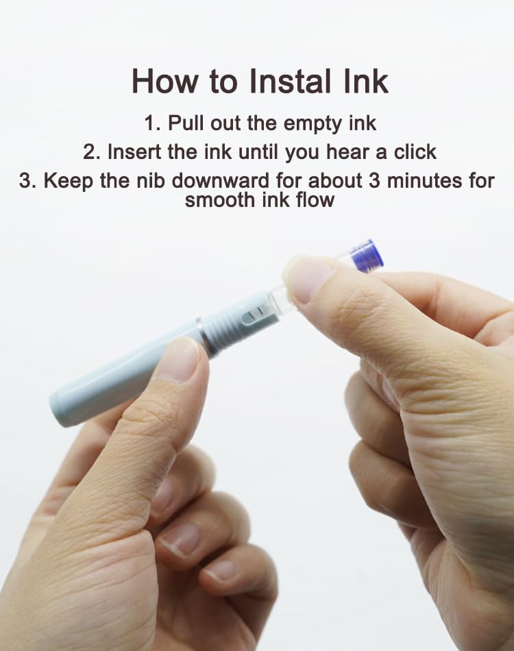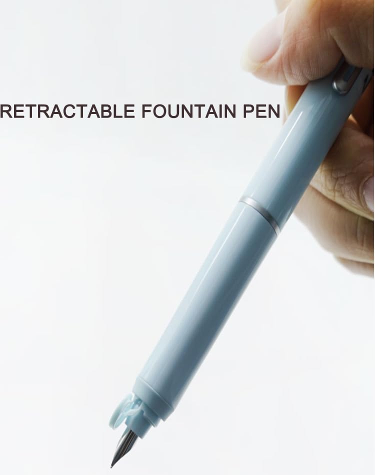 🖋️【Penna stilografica retrattile】Con l'innovativo meccanismo a clic della penna stilografica, puoi goderti la libertà di operare con una sola mano. Niente più tappi persi: una semplice pressione attiva il pennino, ideale per appunti veloci o firme importanti. 🖋️【Design moderno】Il fusto liscio e trasparente combina design estetico con funzionalità pratica. Controlla il livello dell'inchiostro in qualsiasi momento e completa qualsiasi occasione di scrittura con stile 🖋️ 【Esperienza di scrittura fluida】 Il pennino medio abbinato al regolatore avanzato dell'inchiostro garantiscono un flusso di inchiostro fluido e costante. Perfetto per linee distintive e una scrittura sicura su documenti importanti 🖋️ 【Attento all'ambiente e ricaricabile】 Con 5 cartucce d'inchiostro ricaricabili contribuisci alla protezione dell'ambiente e hai sempre inchiostro fresco a portata di mano. Uno strumento di scrittura sostenibile per un lavoro ininterrotto 🖋️【Design ergonomico】L'area dell'impugnatura dalla forma speciale garantisce una maneggevolezza ottimale e uno sforzo minimo, anche durante un lungo lavoro di scrittura. Concentrati sui tuoi contenuti, senza stancarti