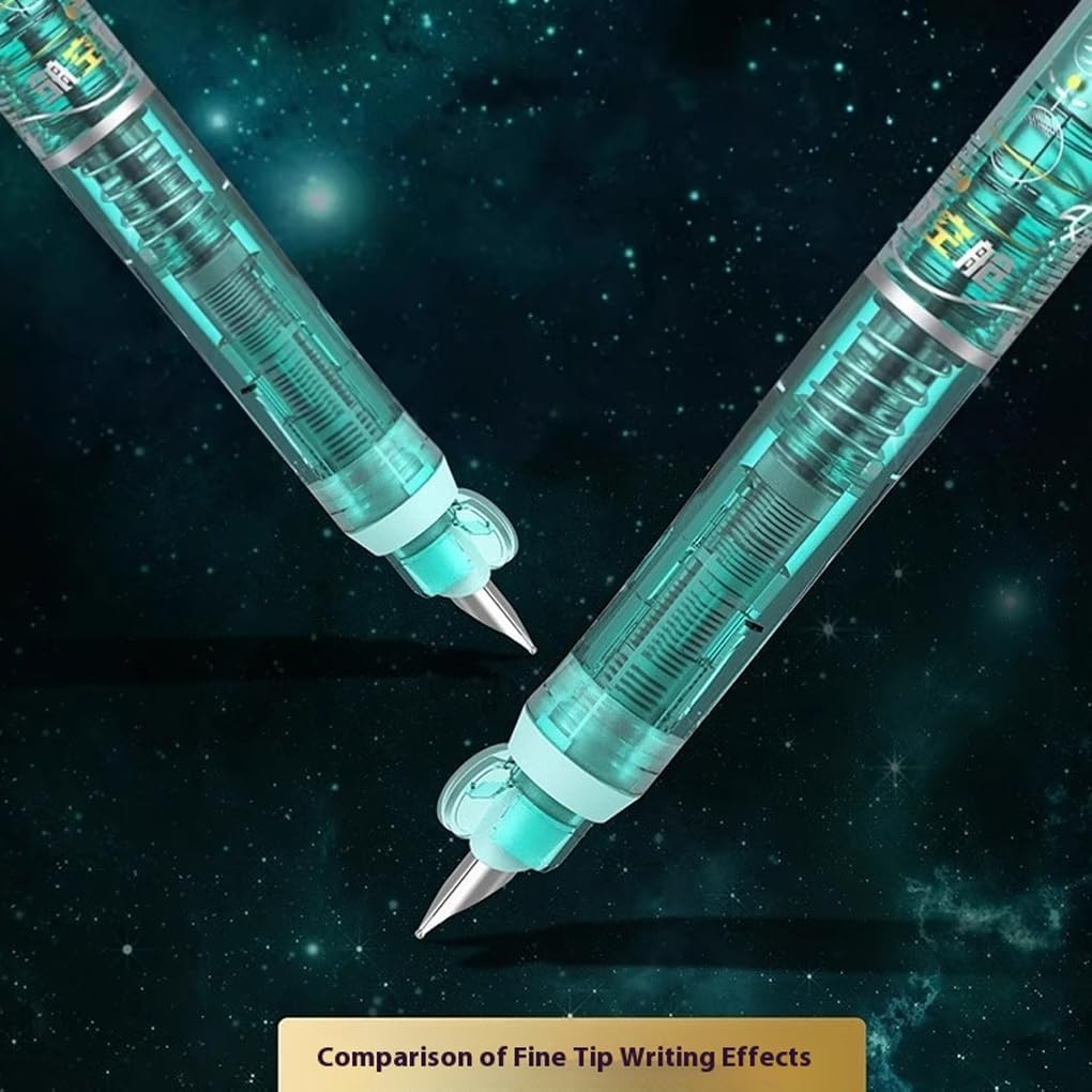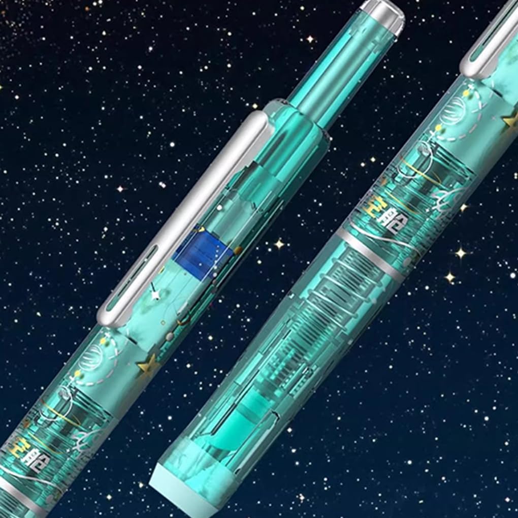 Penna stilografica a scatto: goditi un'esperienza di scrittura fluida con la nostra penna stilografica a scatto, per l'uso in movimento Ricaricabile ed ecologica: include 5 cartucce d'inchiostro ricaricabili, riducendo gli sprechi e mantenendo la penna sempre pronta all'uso Scrittura fluida e precisa: il pennino medio con punta trasparente garantisce una scrittura fluida senza sbavature, rendendo la scrittura pulita e ordinata Inchiostro blu distintivo: distinguiti dalla massa con l'esclusivo inchiostro blu della nostra penna stilografica a scatto, aggiungendo un tocco di stile alla tua scrittura Maestria artigianale: costruita per durare, la nostra penna stilografica a scatto è progettata con precisione e cura, garantendo un'esperienza di scrittura confortevole e affidabile