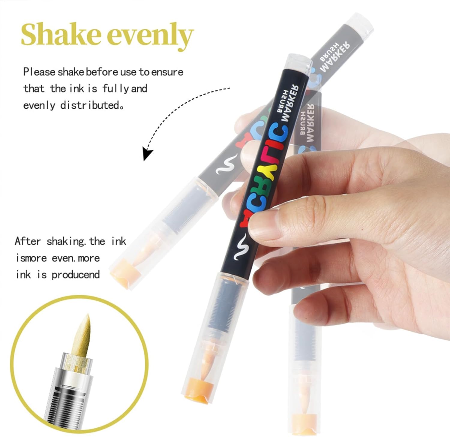 Set creativo completo: Confezione inclusiva di 12 marcatori base + 6 tonalità metallizzate + 2 pennarelli miscelatori, manuale tecnico multilingue con 15 progetti passo-passo per iniziare subito a creare Resistenza Climatica: Ideali per uso interno/esterno grazie alla formula resistente a pioggia, umidità e sbalzi termici, garantendo copertura intensa e permanente su legno, vetro e metalli Colori Vivaci e Intensi: Inchiostro ad alta saturazione garantisce tonalità brillanti che non trasudano, mantenendo la stabilità cromatica e preservando la texture originale delle superfici, ideale per ottenere effetti artistici vividi con un'applicazione semplice e precisa Adattabilità estesa: La formula a base d'acqua coprente si adatta a superfici porose e lisce, ideale per tecniche miste su tela grezza, vetrate artistiche, decorazioni su sassi e personalizzazione di tessuti. Permette transizioni cromatiche fluide e dettagli precisi per migliorare qualsiasi progetto creativo domestico o artistico. Gestione Colori Efficiente: La tavolozza standard integrata garantisce corrispondenze cromatiche accurate e scelta immediata dei colori, mentre il design compatto migliora l'organizzazione degli strumenti per flussi di lavoro artistici ottimizzati