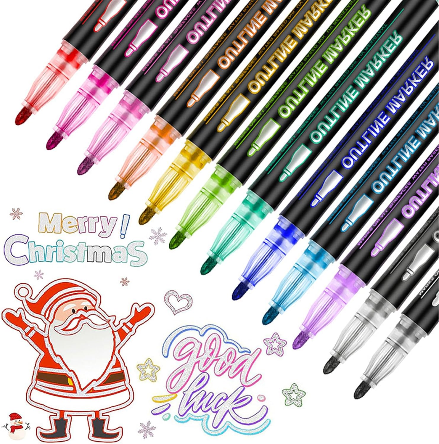 Realizzati con materiali resistenti, questi evidenziatori resistono allo sbiadimento, alle sbavature e alla rottura Ideale per scrapbooking, creazione di biglietti, poster, pittura, diario e prendere appunti Semplice e divertente da usare: agitare accuratamente la penna prima dell'uso, premere delicatamente la punta fino a quando non scorre, quindi iniziare a creare la tua opera d'arte Unica penna a doppia linea glitterata: dotata di una punta da 2 mm, crea automaticamente un effetto a doppia linea, offrendo linee metalliche Queste penne magiche scintillanti sono regali premurosi per compleanni, vacanze e occasioni speciali come festa dei bambini, Pasqua, Natale, Halloween, San Valentino, festa della mamma, Ringraziamento, stagione del ritorno a scuola e Capodanno