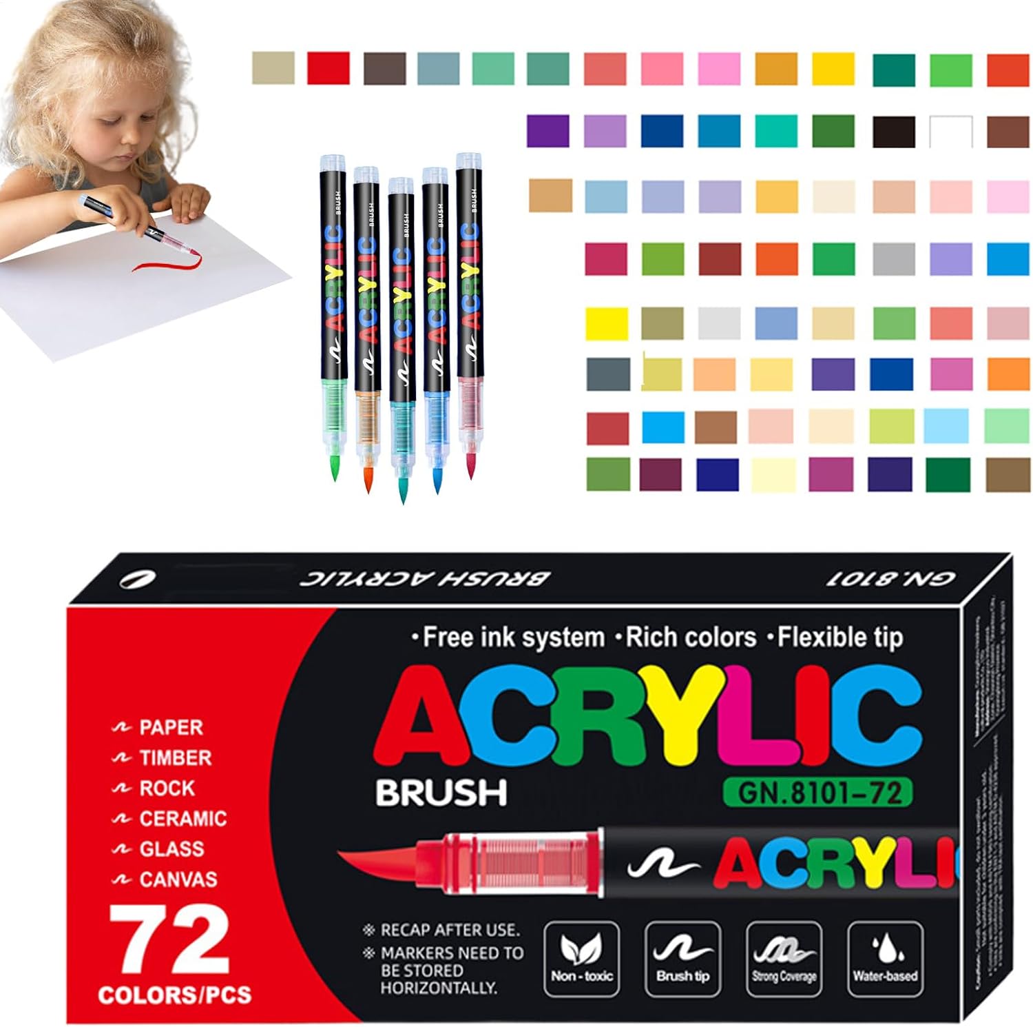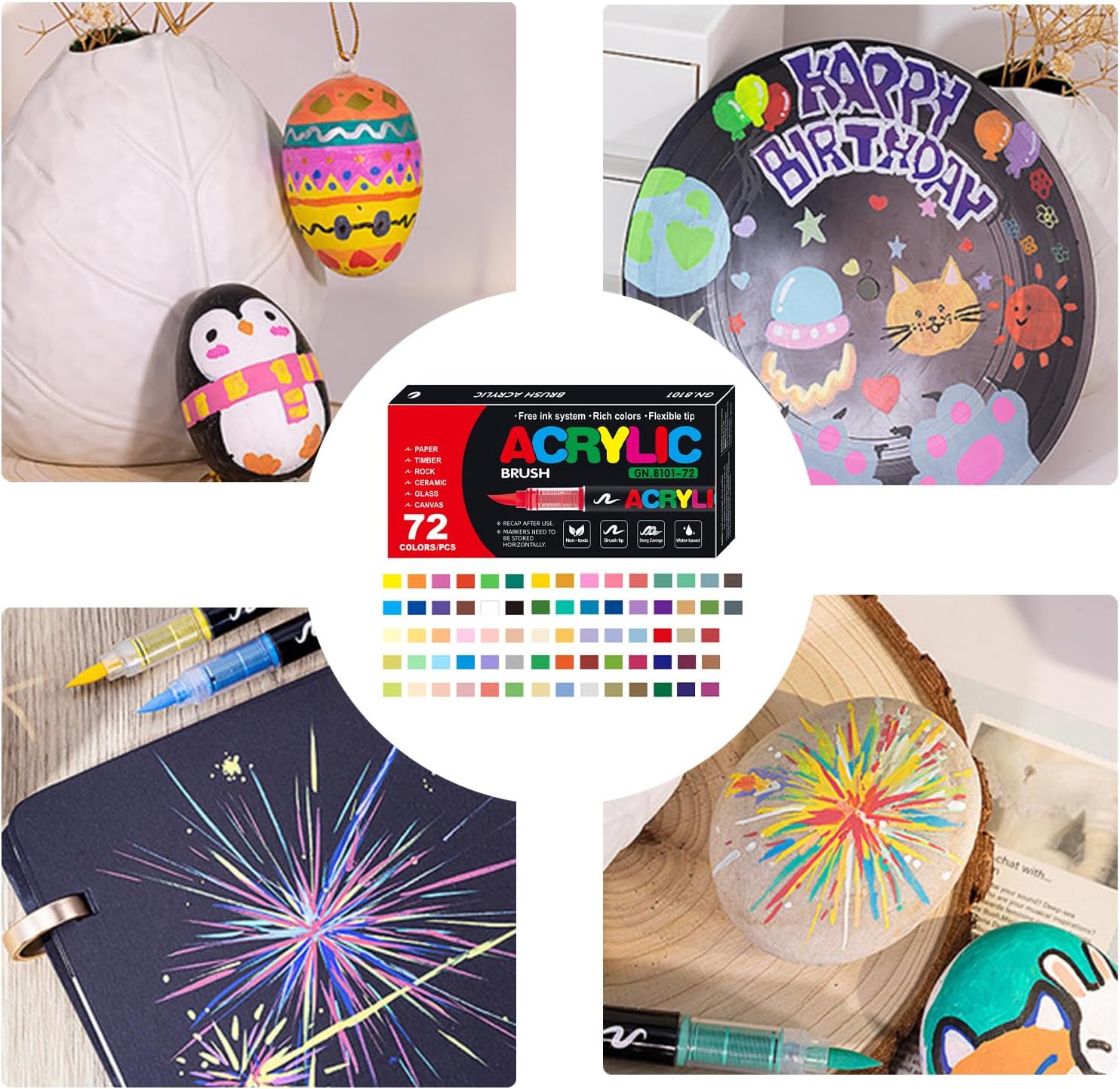 Materiale impermeabile: formulati con materiali di alta qualità, questi pennarelli acrilici sono dotati di inchiostro impermeabile e resistente al sole che rimane vibrante per una stabilità del colore di lunga durata Crea bellissimi capolavori: cattura la potenza dei vividi csolor con una forte copertura, stratificazione senza sforzo ed effetti di colore naturali per una straordinaria espressione artistica Facile da usare: ottenere risultati perfetti agitando delicatamente prima dell'uso per una distribuzione uniforme dell'inchiostro. Regola facilmente lo spessore del disegno con il nostro design a punta morbida, rendendo facile la miscelazione Comodo da pulire: progettati per una comoda pulizia, questi smarker consentono di risparmiare tempo e fatica, risciacquando comodamente con acqua per la manutenzione quotidiana Molteplici applicazioni: eleva il tuo mestiere con un wiselectiosn di colori e la possibilità di lavorare in vari luoghi, perfetto per artisti di tutti i livelli