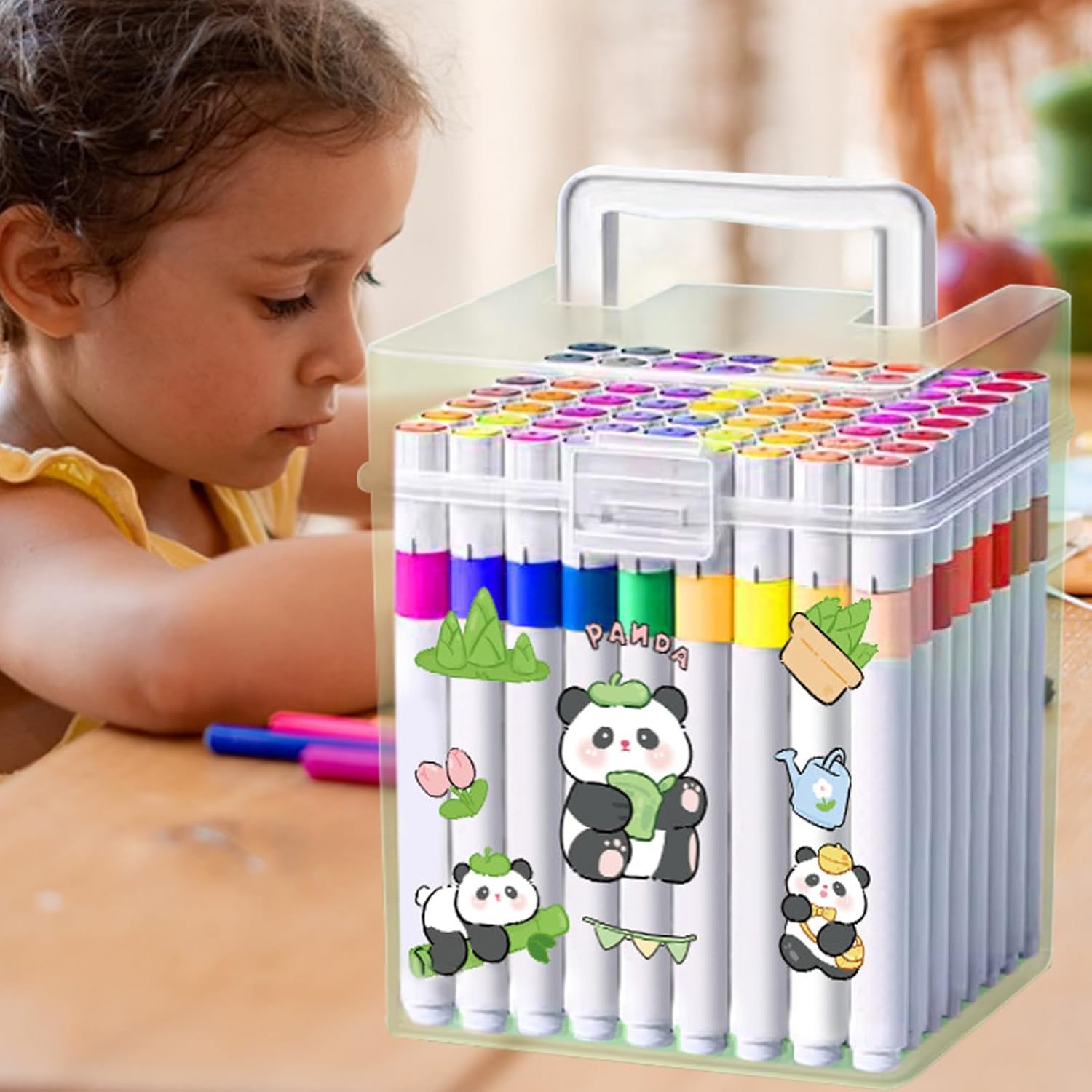 Conservazione efficiente dell'inchiostro: progettato con un nucleo in cotone e una maggiore capacità di inchiostro, offre linee audaci e una lunghezza di scrittura liscia, soddisfacendo facilmente le esigenze di lunghi progetti creativi Set di vacanze fantasioso: dotati di una scatola regalo festiva, questi pennarelli combinano tappi colorati e adesivi a tema cartone animato con pigmenti ad alta saturazione, creando un regalo di vacanza delizioso e creativo per i bambini Vivace longevità artistica: progettati con formulazione acrilica, questi strumenti producono disegni luminosi su tutti i materiali, migliorati da un robusto scudo contro usura e umidità dopo l'asciugatura per progetti creativi duraturi Ricchi strati artistici: progettati per offrire ricchi strati artistici e impilare i colori multistrato lisci, questi pennarelli rendono facile la colorazione a strati supportando l'applicazione ripetuta della carta Design sicuro e confortevole: questi pennarelli per bambini sono realizzati con un cappuccio ventilato per migliorare la sicurezza, insieme a un'impugnatura ergonomica triangolare che promuove una comoda maneggevolezza, riducendo l'affaticamento e offrendo un'esperienza di pittura non irritante