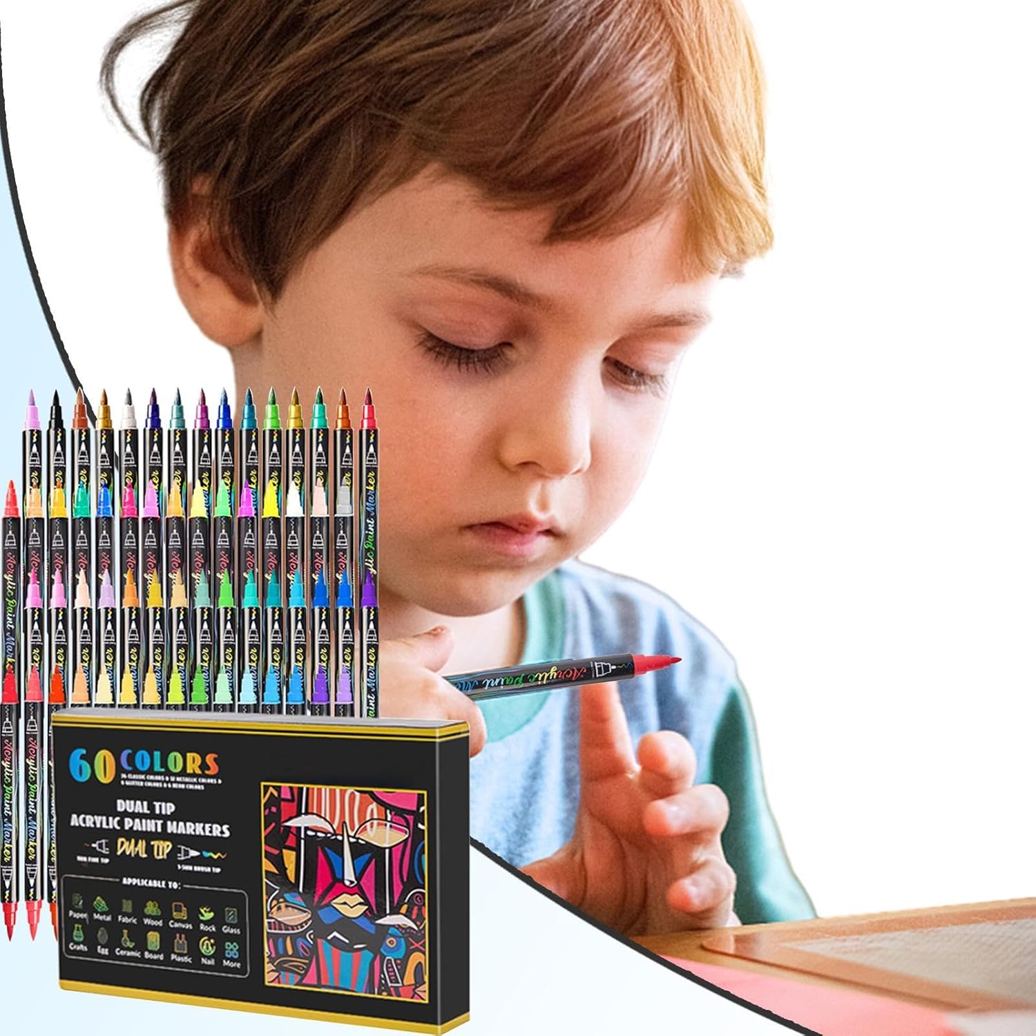 Gamma Completa Creativa: Doppia punta fine/media con 60 colori saturi selezionati, progettati per transizioni graduali e dettagli precisi in schizzi, mappe mentali e progetti educativi con facilità d'uso garantita Combo Creativa: perfetta tra precisione millimetrica della punta fine e fluidità del pennelloRealizza sia micro-dettagli che campiture ampie con un solo strumento Funzionalità pratica: Tecnologia a doppia punta integrata con di erogazione automatica, permette una colorazione uniforme su qualsiasi superficie senza preparazioni preliminari, per progetti artistici e attività didattiche Affidabilità e praticità: Design ergonomico con doppia punta a diverso spessore per dettagli precisi e riempimenti veloci. L'inchiostro a base d'acqua asciuga in 15 secondi prevenendo trasferimenti accidentali, per tecniche miste e layered art. Adatto a molte superfici: Ideali per legno, carta, tessuto, ceramica e oltre, questi marker a doppia punta garantiscono versatilità per progetti artistici, etichettatura e decorazioni con tratto fluido su materiali differenti