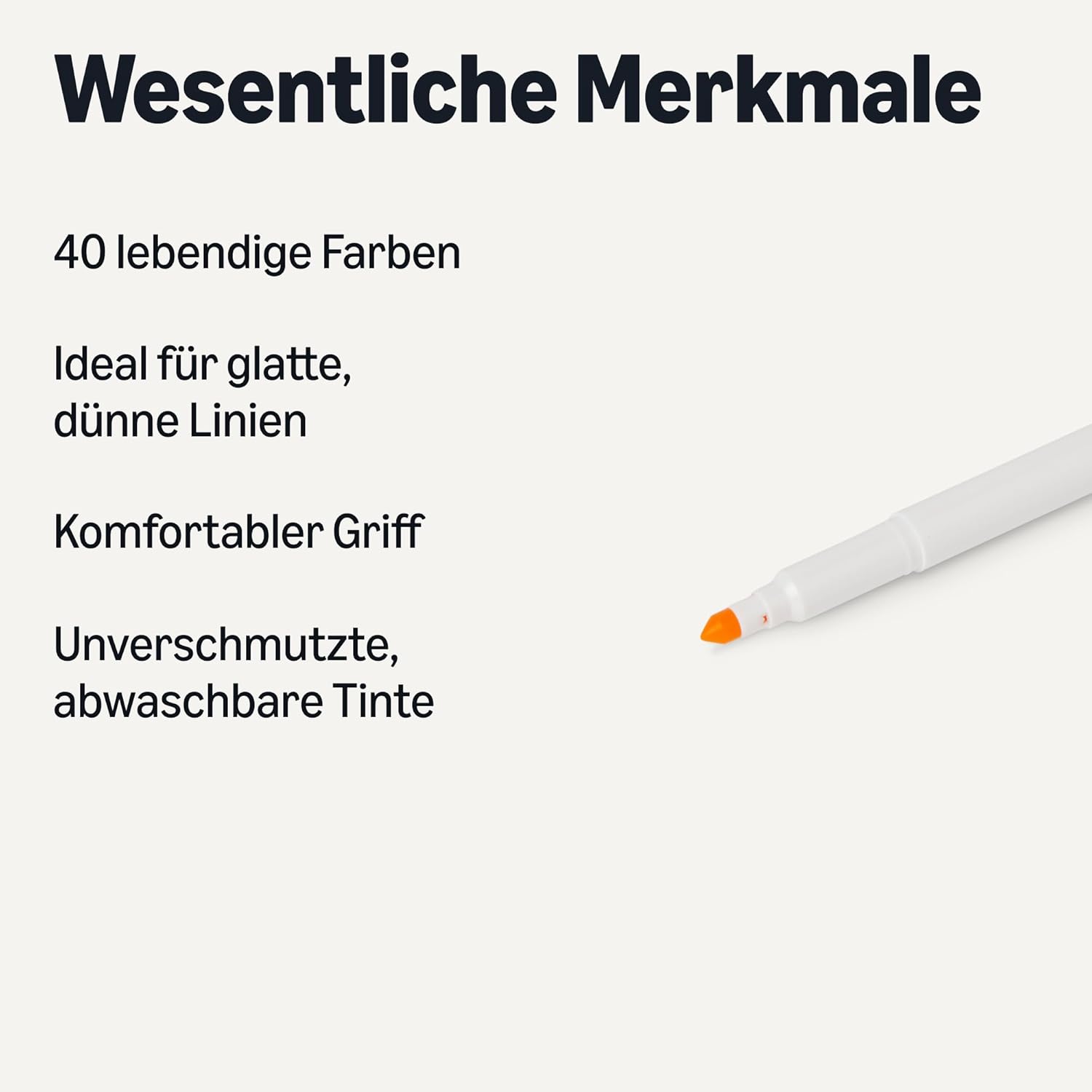 La confezione da 40 pennarelli contiene una selezione di 40 colori di inchiostro vivaci; ideale per colorare, disegnare, fare schizzi e scrivere. La punta durevole e resistente allo sfilacciamento crea tratti lisci e sottili; funziona bene per delineare o disegnare con precisione. L'inchiostro lavabile garantisce una pulizia pulita; sicuro per i bambini Maniglia comoda per bambini e adulti Dimensioni del prodotto: 15,7 x 1,1 cm (L x P)