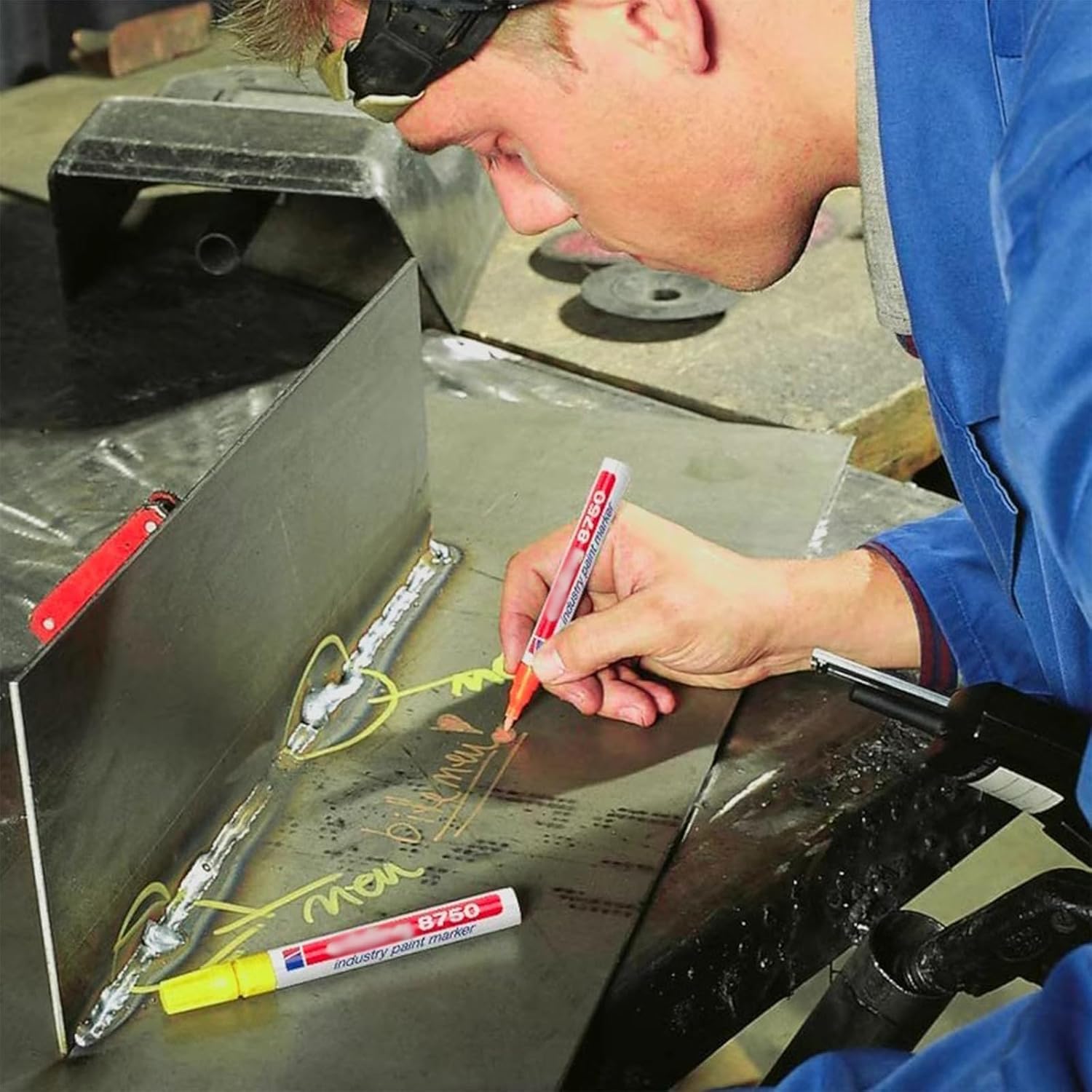 Adatto a tutti oggetti, come plastica, vetro, legno e metallo, o superfici con presenza olio e polvere. Ha anche un effetto particolarmente buono sulla marcatura superfici scure e materiali scuri e può essere utilizzato anche per ritocchi Strumento scrittura essenziale per ingegneri, meccanici e tecnici laboratorio che necessitano un pennarello a vernice permanente resistente all'acqua per l'etichettatura delle apparecchiature e la conformità alla sicurezza Presenta inchiostri resistenti all'alcol e asciugatura rapida e struttura in plastica lunga durata in laboratori chimici o officine difficili. Ampiamente usato per la marcatura industriale, i registri laboratorio, la costruzione esterni, la produzione in officina pennarello industriale con resistenza alle alte temperature a 8750 °F) e inchiostri resistenti all'olio garantisce marcature chiare e resistenti alle sbavature in ambienti estremi I design degli inchiostri leggeri resistenti sbiadimento mantengono la marcatura nitida attraverso l'esposizione termica, contatto chimico e i frequenti processi sanificazione industriale
