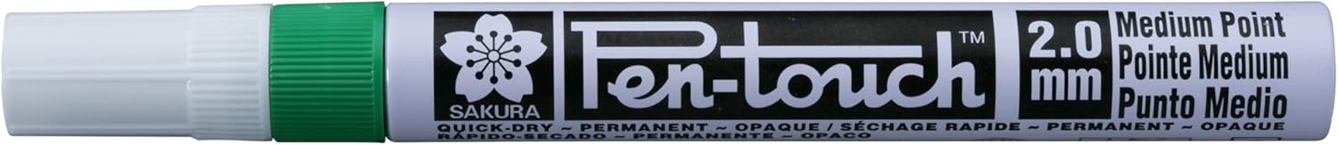 TONALITÀ VERDE MEDIO: questo pennarello Sakura Pen-Touch dona un audace colore verde medio ai tuoi progetti, offrendo risultati vivaci e accattivanti su una varietà di materiali. APPLICAZIONE VERSATILE: perfetta per marcare e illustrare su più superfici come cartoncino, plastica, legno, vetro e persino metallo, consentendone l'utilizzo per scopi creativi e industriali. UTILIZZO SENZA PREOCCUPAZIONI: Dotato di un meccanismo a valvola, questo pennarello garantisce un flusso regolare di inchiostro e una facile miscelazione, garantendo un'applicazione senza problemi per tutte le esigenze di decorazione o marcatura. PRESTAZIONI DURATURE: il resistente cilindro in alluminio contiene inchiostro altamente pigmentato che aderisce permanentemente alla maggior parte delle superfici, ma può essere rimosso dalle superfici non porose con alcool o diluente per vernice, garantendo flessibilità e affidabilità. CREATIVITÀ E INNOVAZIONE: Sakura è rinomata per il suo impegno nell'incoraggiare la creatività e l'espressione, fornendo prodotti di alta qualità ad artisti, architetti e innovatori in tutto il mondo.