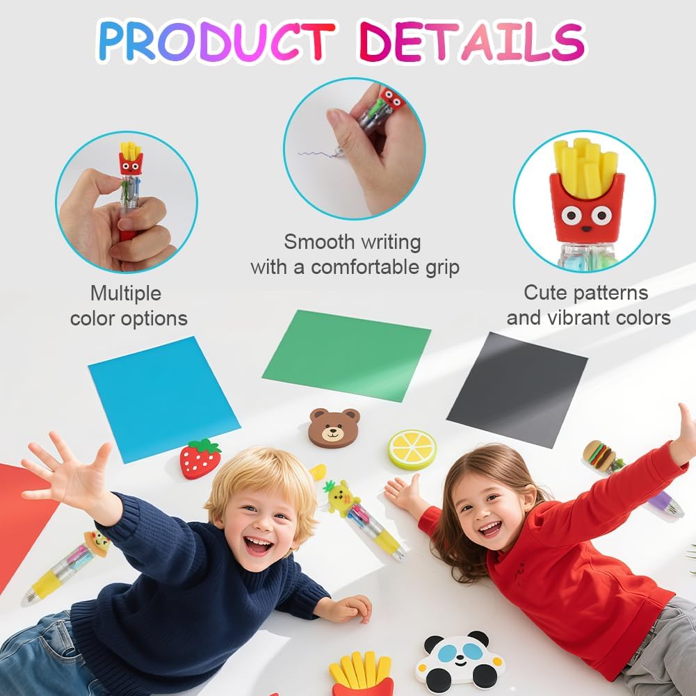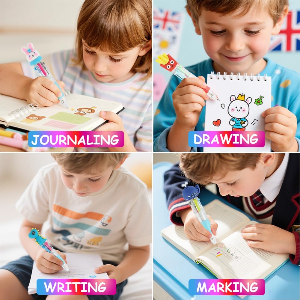 🐻️【Diverse Opzioni di Colore】Una penna penna a sfera retrattile racchiude quattro colori in uno, con un esclusivo design quattro in uno che ti consente di cambiare colore senza dover cambiare penna. Passa tra rosso, verde, blu e nero per creare combinazioni fantasiose, trasformando anche gli appunti più spenti in colori vivaci. 🐰️【Ergonomia】Le dimensioni ridotte e l'impugnatura in silicone antiscivolo della penne colorate offrono una presa sicura per I bambini e una scrittura confortevole per gli adulti. Il cappuccio si chiude a scatto per evitare perdite di inchiostro, rendendola facile da trasportare in un astuccio o in tasca per prendere appunti ovunque. 🐶️【Alta Qualità】La penna retrattile 4 colori utilizza inchiostro ad asciugatura rapida per una scrittura fluida e senza sbavature. La punta fine da 0,5 mm è ideale per disegni dettagliati e scorre fluidamente su una varietà di materiali, inclusi quaderni, cartoncini e buste. 🐱️【Ampia Applicazione】La penna penne gel colorate è adatta sia a bambini che ad adulti. Gli studenti possono usarla come distanziatore per gli appunti di classe, I designer possono abbozzare rapidamente schemi di colori e I genitori possono usarla come strumento di apprendimento dei colori durante le attività manuali con I loro bambini. 🦝️【Regalo per Festa di Compleanno】La penna penna multicolore 4 colori è una delle preferite da ragazzi, ragazze e persino adulti. è un'ottima scelta come regalo per feste, festività, compleanno o premio per il riscatto dei punti accumulati in classe.