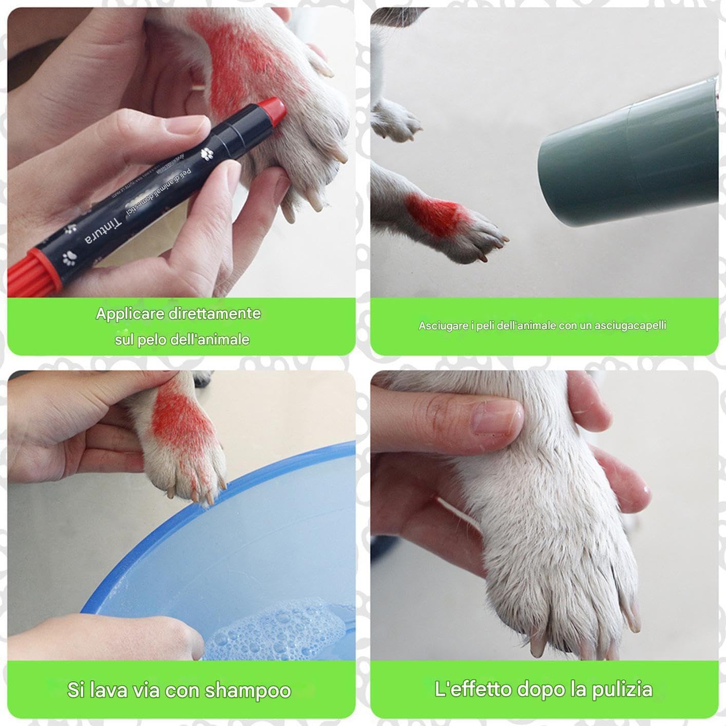 Formula delicata: il di colorazione a base vegetale mantiene la vitalità dei capelli durante le trasformazioni temporanee. Bilanciata da pH per compatibilità cutanea canina/felina. Fornisce un'espressione comoda e creativa attraverso una formula sicura Kit di toelettatura stagionale: ottiene risultati perfetti per il travestimento per le vacanze con 12 segnali di tintura per capelli per animali domestici vibranti. Questo set creativo consente ai proprietari di animali domestici di progettare un cappotto basato sul tema attraverso l'applicazione a colori a strati Facile da pulire: questa formula per tinture per capelli per capelli per cani per cani con solido d'acqua si facilmente con shampoo normale, non lasciando . La composizione delicata e non irritante protegge la salute senza danneggiare la struttura dei capelli Ampie applicazioni: la formula di cassette si adatta a varie trame della mano, consentendo una regolazione infinita da sottili luci a motivi geometrici audaci. Ideale per i proprietari di animali domestici che cercano di mostrare la personalità del proprio cane Presente pratico: crea ricordi indimenticabili con un processo di tintura di alta qualità e safe per animali domestici. Ideale per i principianti, questo kit incoraggia l'interazione giocosa e raddoppia come regalo ponderato