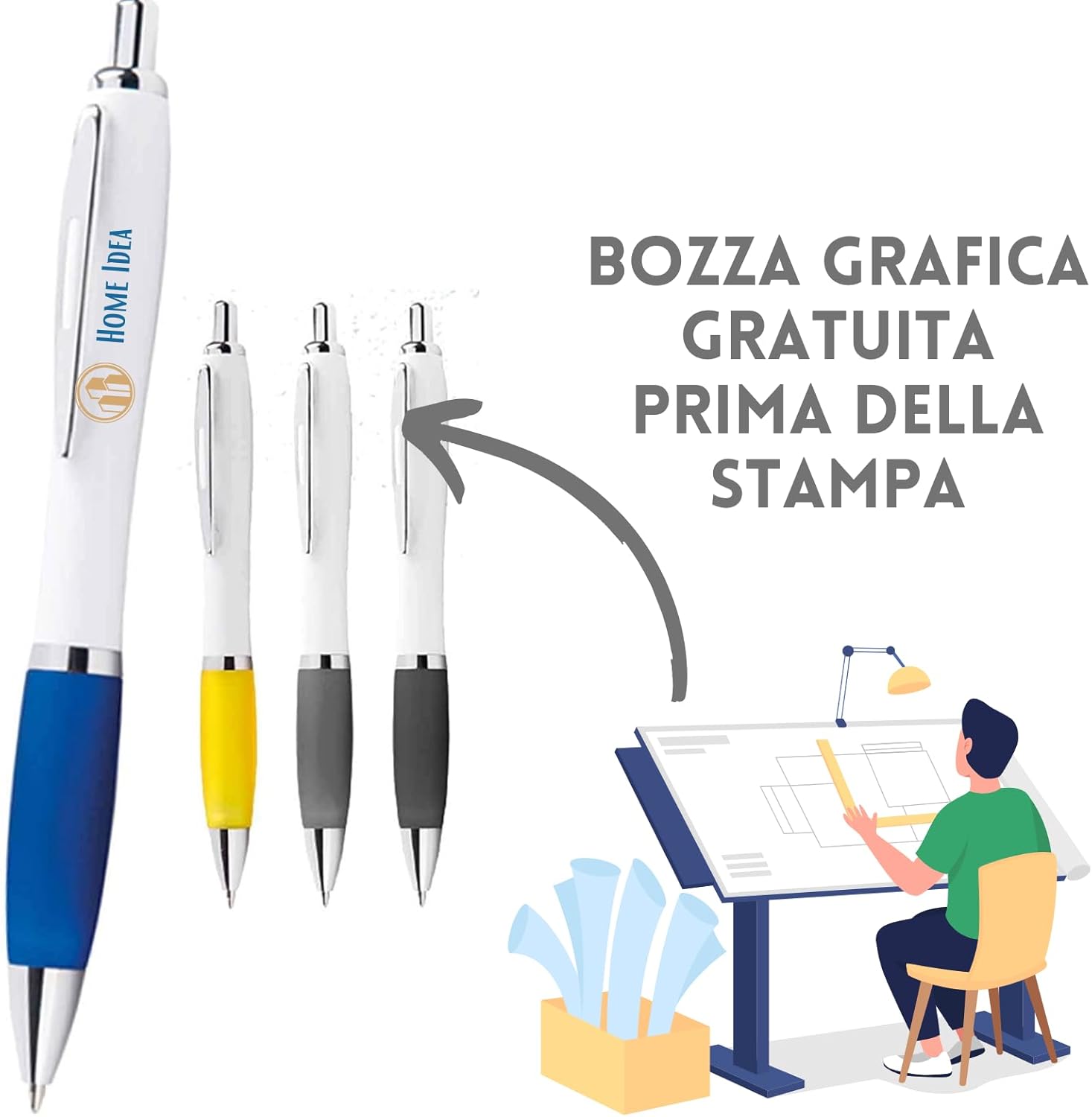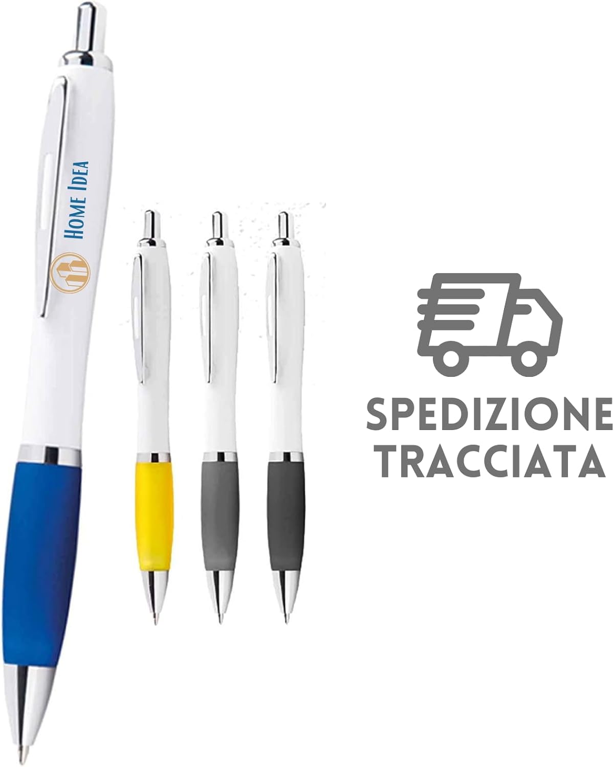 [ STOCK DI ACQUISTO ] Penne personalizzate a colorazione grip mista con possibilità di indicare il colore desiderato. Inchiostro nero [ AMPIA AREA DI STAMPA ] Il tuo brand ha a disposizione ben 0,58 x 6 cm di area stampabile [ COME INVIO IL FILE ] clicca a destra sul tasto di opzioni di personalizzazione e da lì carica le tue istruzioni o il tuo file e se non riesci non preoccuparti, concludi l'acquisto ed invia il tuo file di stampa via mail [ COSA POSSO STAMPARE? ] personalizzate con il tuo logo, nome, indirizzi o pagina web, nessun vincolo [ ACQUISTA ORA, SIAMO AL TUO FIANCO ] siamo sempre a disposizione per consigliarti, aiutarti e rispondere a tutte le tue domande con la formula soddisfatti o rimborsati! | N.B. nei periodi di maggiore richiesta Ottobre - Dicembre, alcune penne potrebbero avere l'inchiostro blu