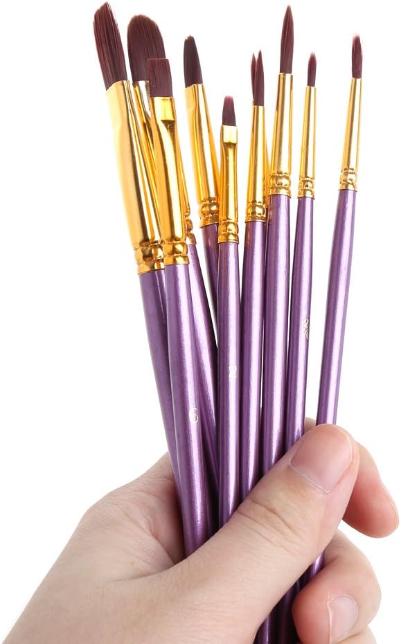 Setole in nylon, non facilmente deformabili Design ragionevole, piacevole da tenere in mano Adatto per pittura a olio, pittura acrilica e altri tipi di pittura Nylon per capelli Manico in legno