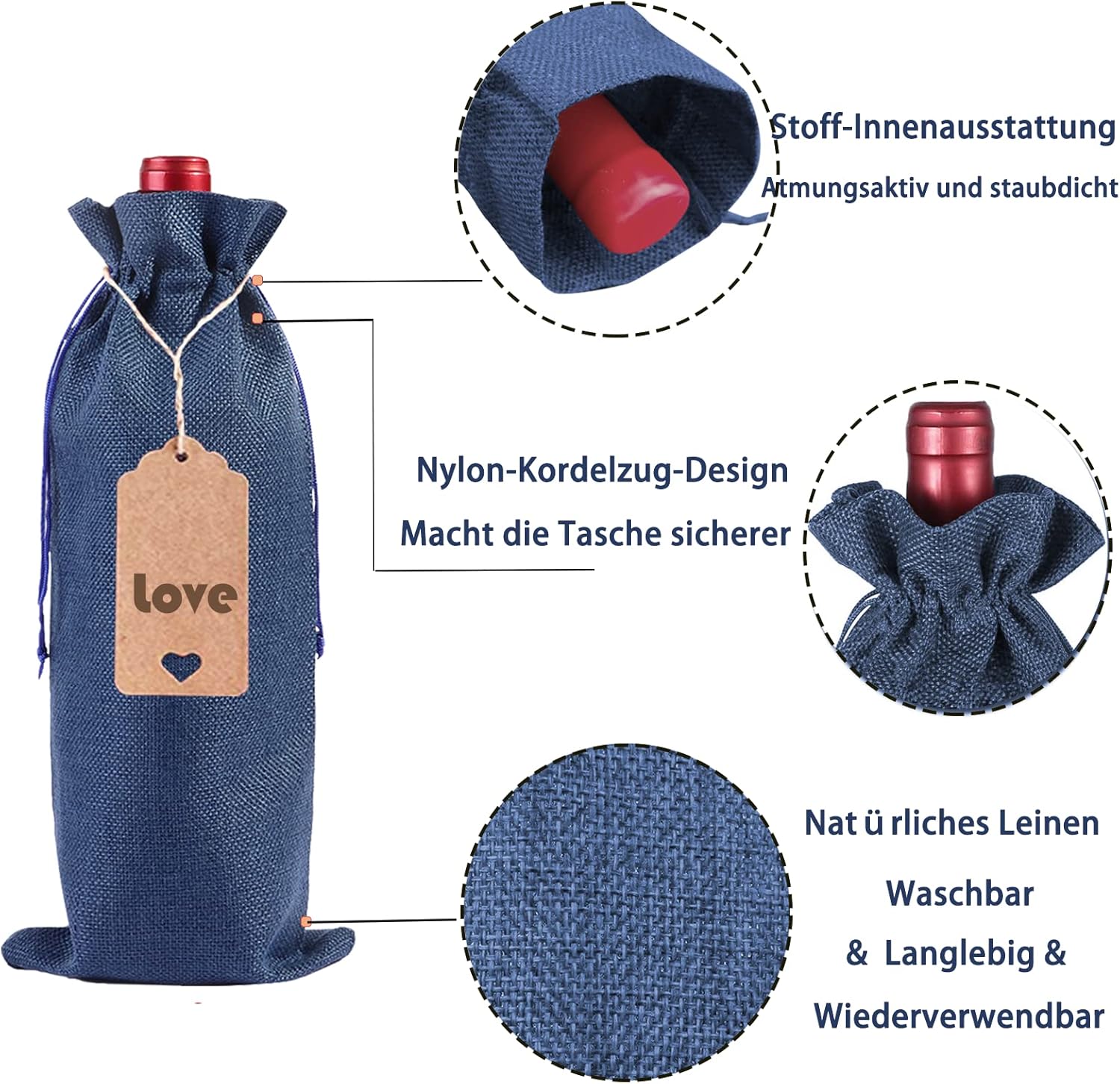 🎁【Contenuto della confezione】Viene fornito con 12 sacchetti per vino con coulisse, 12 etichette regalo, 1 fascio di spago da 10 m e 1 apribottiglie con cavalluccio marino. Puoi appendere l'etichetta alla borsa con un filo di iuta. 📷【Dimensioni del prodotto】Ogni borsa per vino in tela misura circa 35x15 cm/13,8x5,9 pollici e si adatta alla maggior parte delle bottiglie di vino e champagne standard da 750 ml/25,3. I sacchetti regalo per bottiglie di vino possono contenere anche altri oggetti. 💝【Materiali di alta qualità】Questi sacchetti per vino in iuta sono realizzati in tela naturale di alta qualità, lavabili, riutilizzabili, assorbono l'umidità, traspiranti, durevoli ed ecologici. Ogni copertura per bottiglia di vino è dotata di un cordoncino integrato che ne facilita la chiusura e l'apertura, comoda per riporre le bottiglie di vino e il tessuto interno può proteggere la bottiglia di vino e proteggerla dalla polvere. 🎉 【Scenari applicabili】 La squisita combinazione di sacchetti regalo per vino è perfetta per Natale, conservazione domestica, visite, feste, matrimoni, anniversari, compleanni, addio al nubilato, inaugurazione della casa, viaggi, degustazione di vino alla cieca, celebrazioni, riunioni di famiglia, San Valentino, Ringraziamento, Capodanno, ecc. 🎈 【Personalità creativa】: questa borsa per vino senza motivi è perfetta da riempire con le tue cose preferite o motivi festivi. Ad esempio, a Natale, San Valentino, Capodanno e anniversari potete realizzare buste per il vino con elementi festivi o allegare direttamente alle buste per vino immagini con elementi festivi.