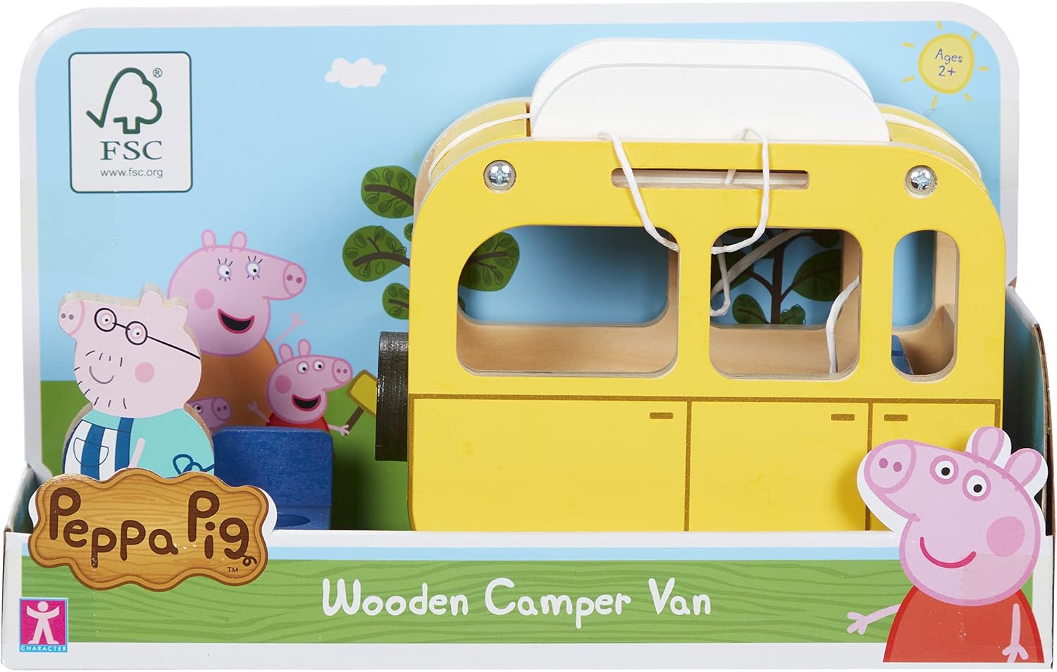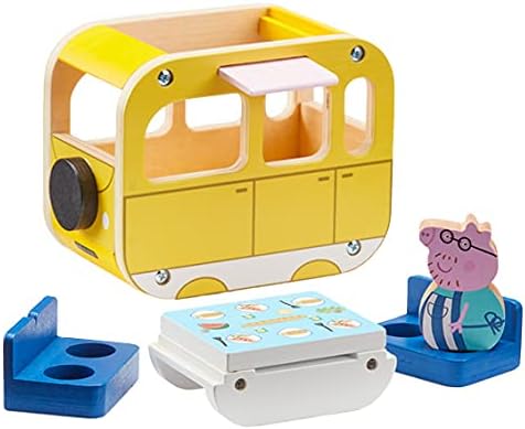 Camper classico Peppa Pig in legno da spingere lungo La figura di Daddy Pig viene fornita con piedi drop n play Può essere facilmente lasciato cadere nella fessura del sedile del conducente Robusto, resistente e ideale per mani piccole