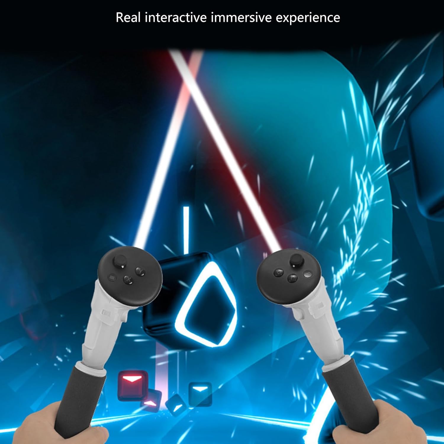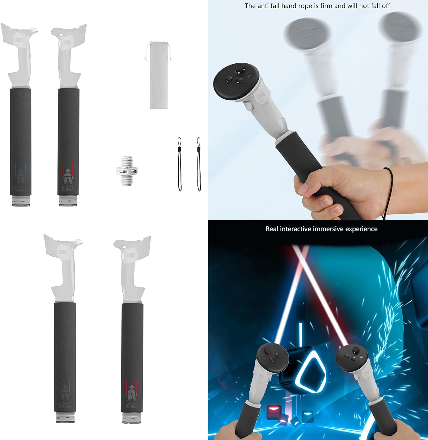 Sensazione interagente realistica che migliora notevolmente l'esperienza di gioco Non bloccare i tracciamenti a infrarossi ABS per giocare senza intoppi, senza allungare, saldamente con un comodo Gioco vario e confortevole, non scivoloso, più combinazioni, vera esperienza interagente Per 3 fissaggi, l'impugnatura della spada laser non blocca nessuno