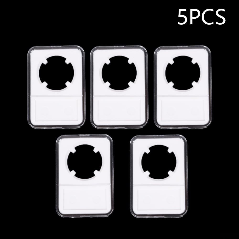 Conservazione sicura: questi portamonete in acrilico trasparente offrono una visibilità chiara e offrono una protezione duratura contro polvere, umidità e cadute accidentali, mantenendo le monete commemorative in perfette condizioni. Set completo da 5 pezzi: ricevi cinque porta monete identiche che misurano 8,5 x 6 x 1,3 cm ciascuno, con inserti in schiuma dal diametro di 30 mm tagliati con precisione che culla delicatamente le monete senza causare danni o reazioni resistenti. Costruzione acrilica di alta qualità: realizzate in materiale plastico ad alta trasparenza, queste vetrine offrono un'eccellente trasparenza per la visualizzazione delle monete fornendo allo stesso tempo una protezione robusta a prova di perdite per preziosi oggetti da collezione. Soluzione perfetta per l'esposizione: l'elegante design bianco migliora la presentazione delle monete per i collezionisti, con funzionalità impilabili che consente di riporre organizzato in armadi, scaffali o aree espositive per un facile accesso e visualizzazione. Ammortizzazione sicura in schiuma: ogni supporto include staffe in schiuma tagliate su misura che afferrano saldamente le monete in posizione, impediscono il movimento durante la manipolazione o il trasporto, mantenendo l'integrità della moneta senza lasciare segni o residui.