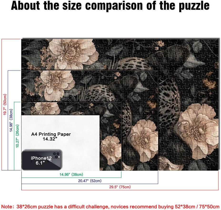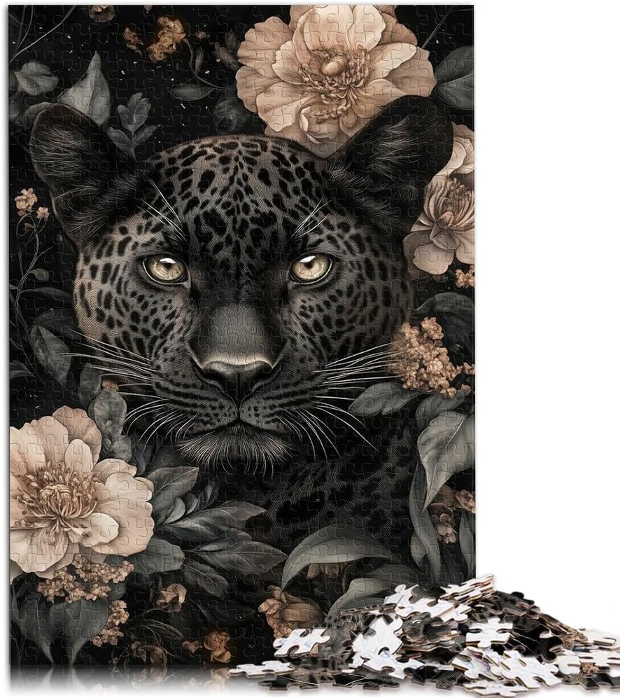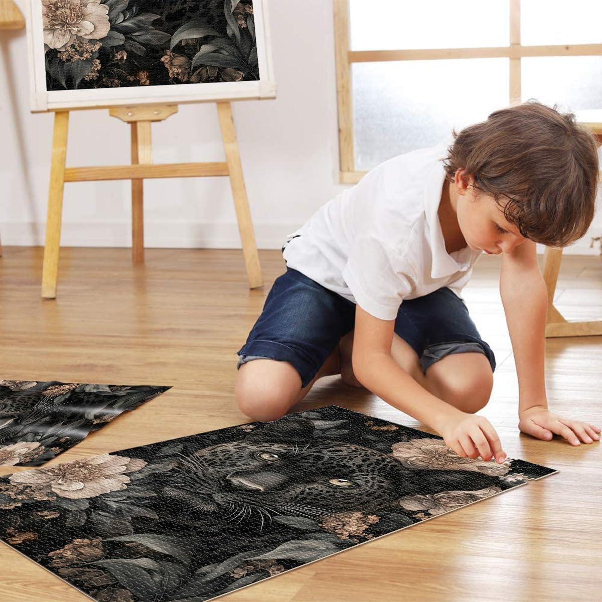 per adultiPuzzle da 2000 pezzi Leopardo nero floreale Fatto di cartone Adatto a partire dai 14 anni Gioco di famiglia per e Un'opera d'arte misurare:70x100cm