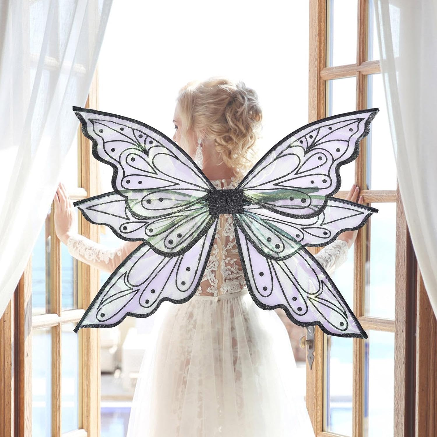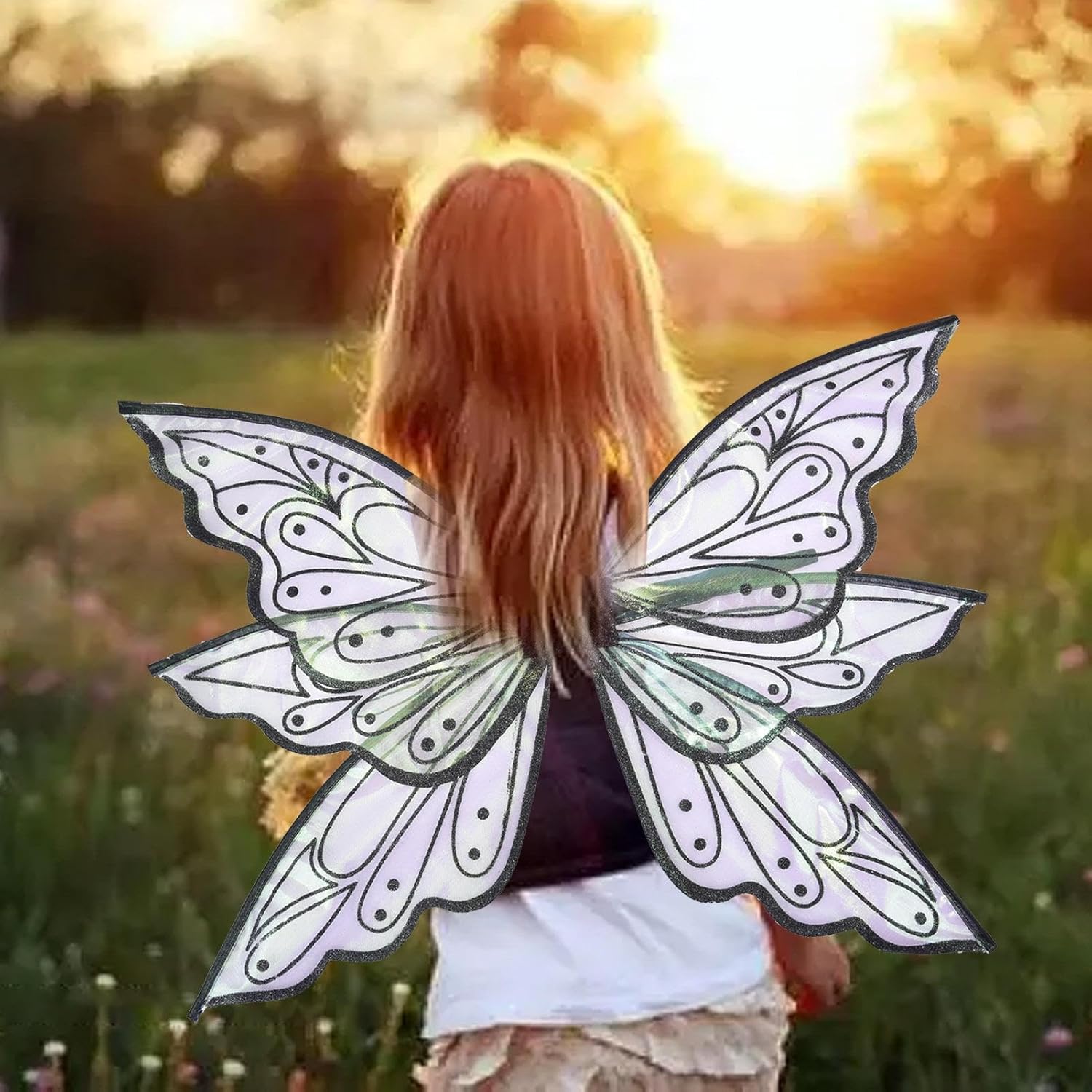[Materiali di alta qualità] Realizzato in materiale filato di alta qualità, Fairy Wing è leggero e comodo da indossare e contiene un profilo del bordo in filo duro antiruggine che non è facile da deformare o rompere. [Universale per la maggior parte degli adulti e dei bambini] Fissato con due cinture elastiche, che non sono facili da staccare. Quando non in uso, può essere piegato al centro 'ala per riporlo facilmente, le ali di fata misurano circa 60 cm x 50 cm/23,6 x 19,6 pollici quando sono aperte, adatte per adulti e bambini. [Effetto sfumato magico] Diventeranno gradualmente colori meravigliosi sotto il riflesso della luce, le ali di Halloween ti permetteranno di diventare la fata farfalla più , con un effetto sfumato magico. [Applicazioni multiple] Molto adatto per giochi di ruolo in feste festive, costumi per spettacoli teatrali, oggetti di scena, feste di Natale, feste di compleanno e regali, le donne Fairy Wings sono ideali per vestirsi, vestirsi, ballare, fingere o giocare, vivaci e colorate. [Ideale come regalo] Princess Fairy Wing è un fantastico regalo per un compleanno o Natale, ogni ragazza ha il sogno di diventare una principessa delle fate, può trasformarti in un'adorabile fata che danza nel mare di fiori e farti amare da innumerevoli piccoli partner.
